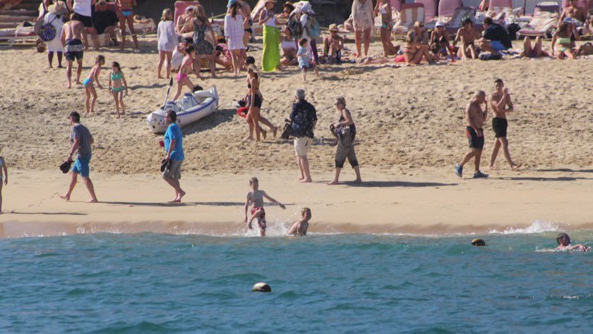 After a couple days, we departed at night so we would arrive at the next anchorage, Bahia de Los Muertos, around sunrise. There was no wind, so we motored the whole way, and I had the second watch, so I slowed down so we wouldn’t arrive while it was still dark. We only stayed there for one night because the beach wasn’t as nice for playing or running. The boys actually dumped the kayak trying to launch from the beach to get back to the boat. However, we did enjoy a nice, huge lunch at the restaurant there and a pleasant walk around some tide pools. It was also the first time we were able to get decent wifi from the boat so we were all like addicts getting our fix. I spent all evening uploading photos to Facebook.