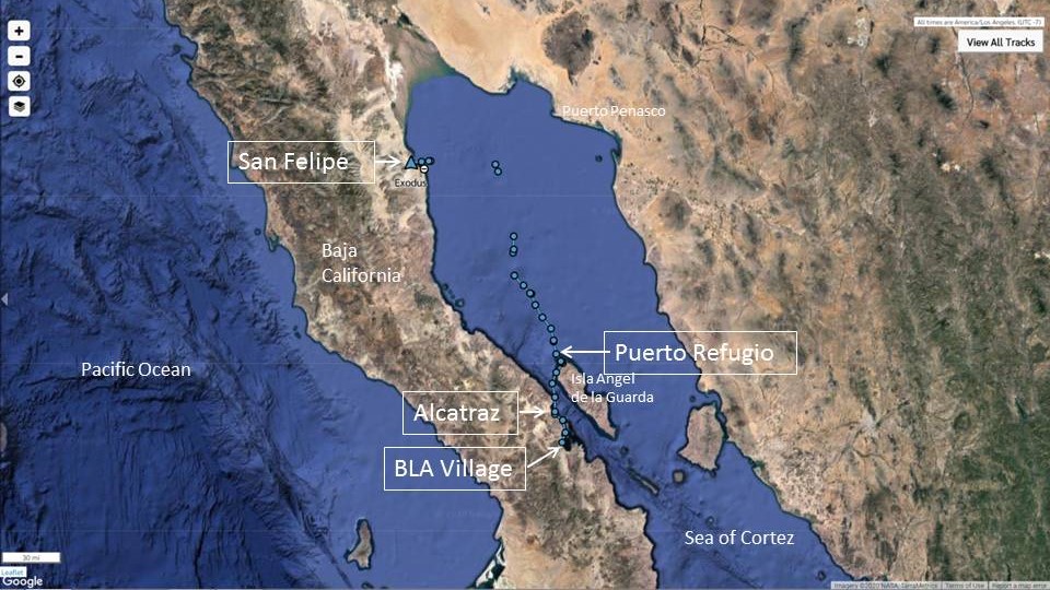 I’m very happy we went to San Felipe for many reasons, but when it was time to leave, we couldn’t get out of there fast enough. I think the thing we absolutely liked the least was the bird poop! The marina is in the flight path and it was near impossible to clean Exodus fast enough to keep up. Good riddance, stupid pelicans! We left San Felipe on November 2 with a plan to stay nearer to the coast this time. We were hoping to get to Puerto Escondido in time to catch up with Lady Carolina, and we were looking forward to stopping a few places along the way.