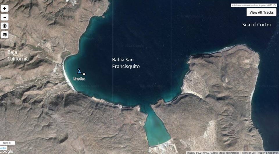 We made it to Bahia San Francisquito earlier this morning. It was a pretty uneventful 2 night passage with steady wind in the 10-15 kt range from mostly behind us. The boys caught 2 Dorado yesterday, so we had a sashimi appetizer last night and will have fish tacos tonight. All is well on board Exodus.