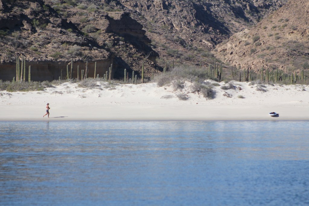 It’s been nice at San Francisquito this time. Last time we couldn’t really go ashore because of the bugs but it’s cool enough this time that’s not an issue and I’ve even been able to run on the beach in the afternoon imagine that.