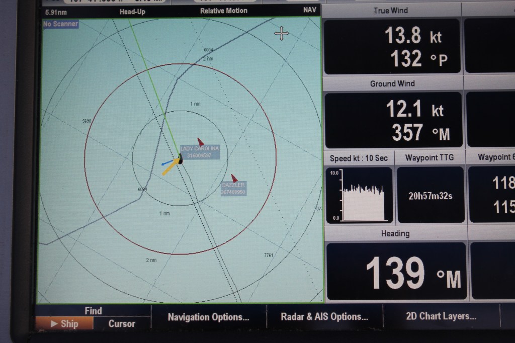 …passes right through the middle of our caravan (that’s Lady Carolina and True Blue V)