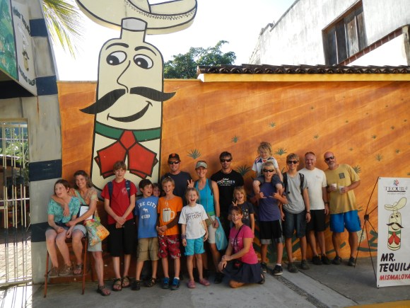 Since we wouldn’t be going to Costa Rica on this voyage, we thought we could at least give the kids a canopy tour here in Mexico. So, we organized with a bunch of other kid boats, searched the internet for a good deal, and on Jan 3 we took advantage of a 2 for 1 special and hopped on a bus to an OXXO parking lot in Jarretaderas to be picked up by the tour company. We were with Sand Dollar, Kenta Anae, Appa, and Kyle (Lady Carolina), Jonathon and Victoria (Fluenta) came along as orphans. We picked this tour mainly because of the special, but it turns out that it is on the set of the movie Predator, and they take advantage of that in all of their marketing. Cheesy? Yes. The ziplines themselves were quite fun, but much different than what Tim and I did in Costa Rica. First of all the setting was far more touristy since in addition to all the Predator marketing there was a large restaurant that we were zipping over. Second, the method of braking yourself as you were coming down the zipline was different. In Costa Rica we wore thick gloves and we braked by using the glove behind the attachement point on the line to provide friction. Here, we rocked ourselves side to side and the friction was provided by metal on metal. The landings were pretty forceful as well. My instinct was always to slow down but the guy at the bottom would tell me to keep coming, and then I’d jerk forward as he stopped me at the bottom. The kids had a lot of fun, so I’m glad we did it, but it just didn’t live up to me memory of our experience in Costa Rica. Afterwards the kids swung on the rope swing into the water at the restaurant while we sat around and ate and drank. Good Times.