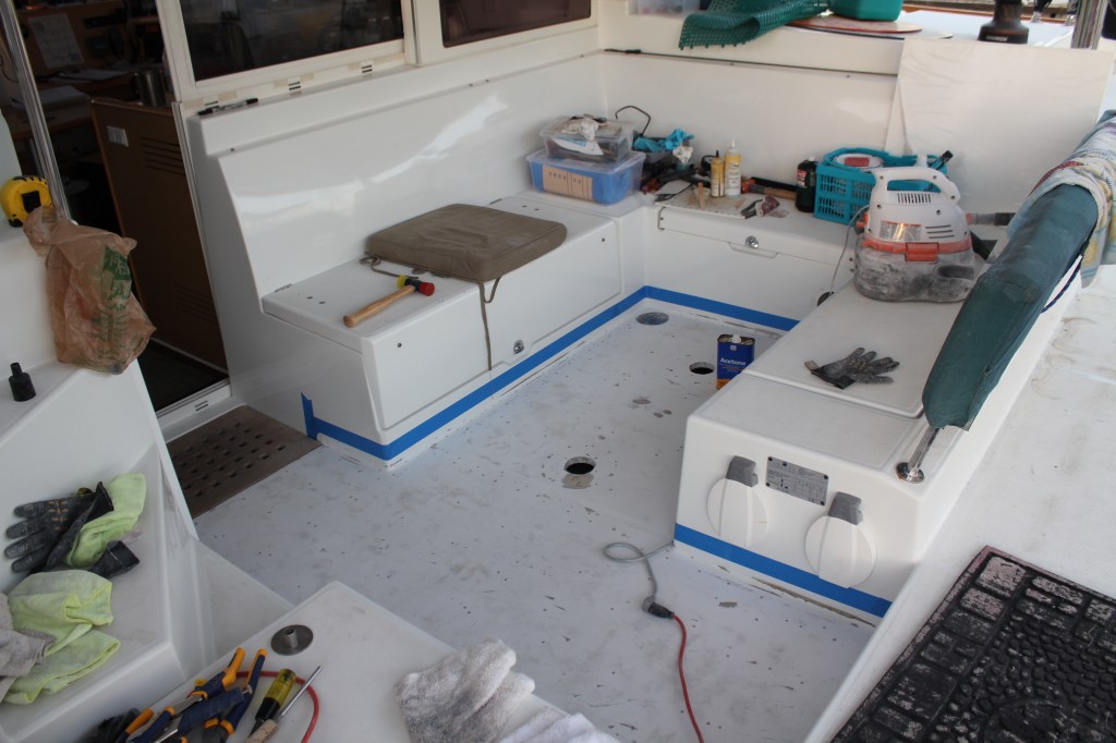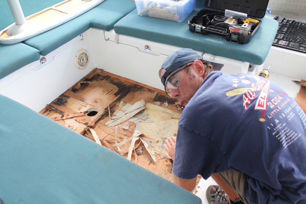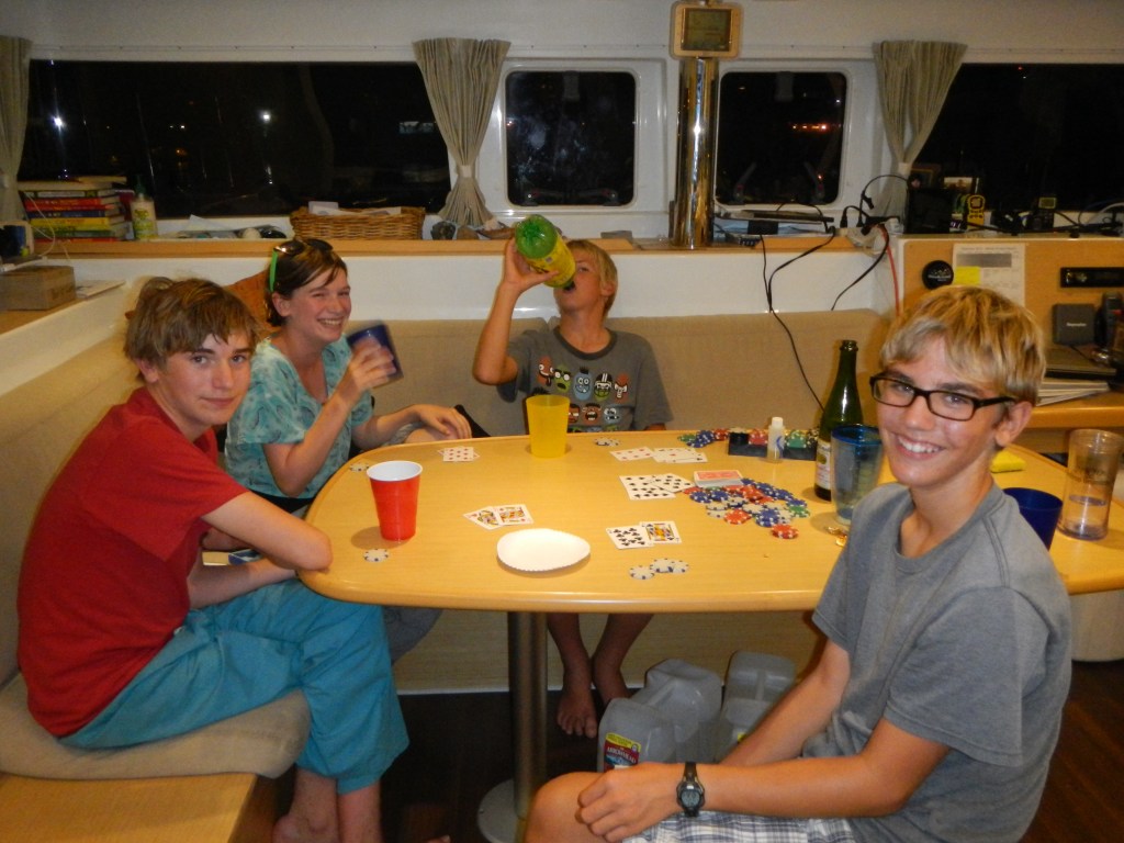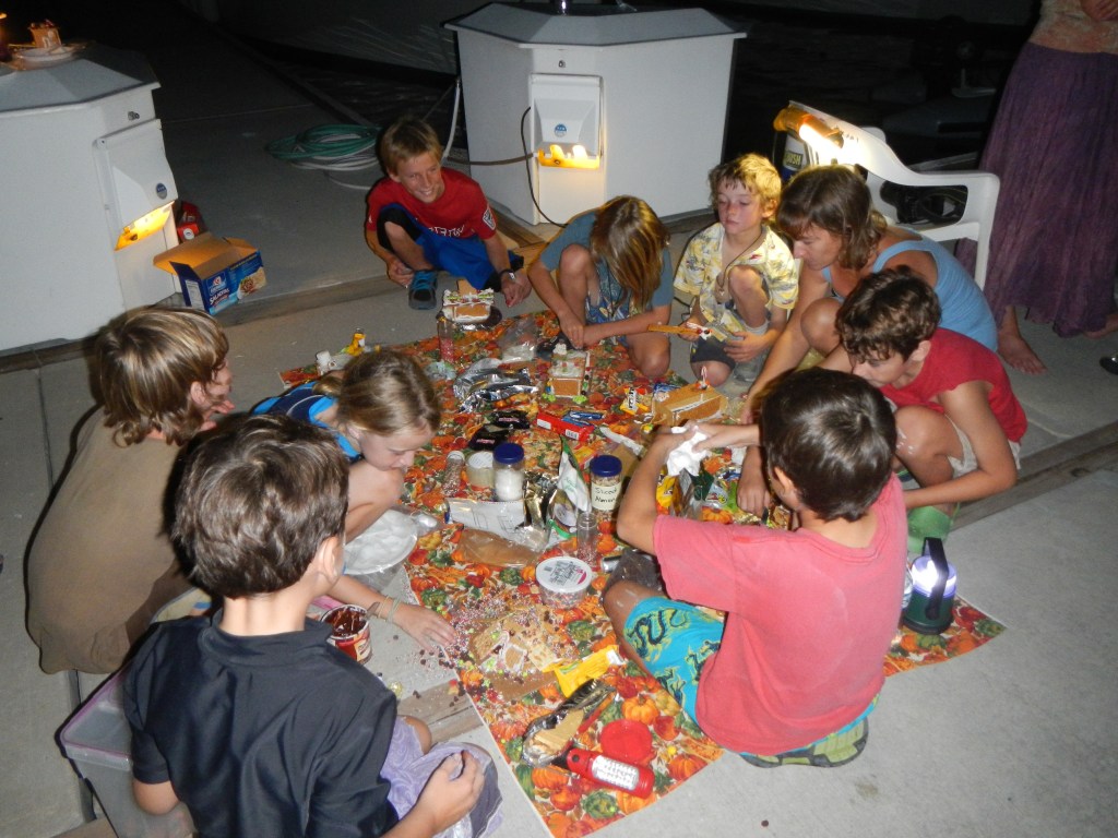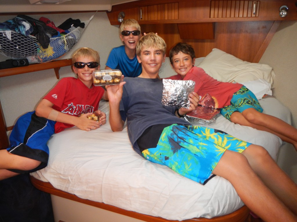 We are having so much fun here in the marina. There are kids everywhere! We have met another boat called Sand Dollar and they have a 14 year old boy and a 12 year old girl, so there are some older kids for Alex and Kyle to hang out with. Brenden is still as playful as ever and spends most of his time with the younger kids. We went out to dinner last night with their family and another family that has an 8 and a 10 year old (and a 3 week old!) OK, it’s not all fun and games in the marina… Tim has started ripping out our cockpit floor to repair it and make it water tight again, and with shore power I have decided to vaccuum every square inch of Exodus. It’s been raining a lot and night before last we had a lot of lightening.