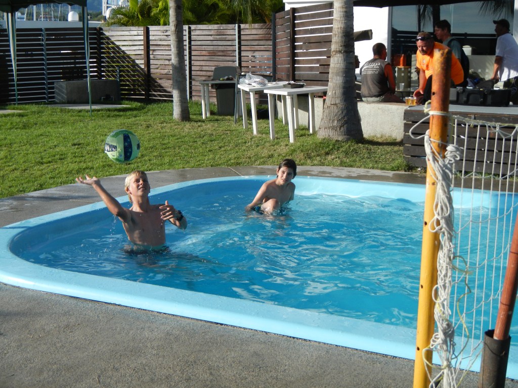 - Free beer at the pool, Alex played volleyball in the pool w/ other kids