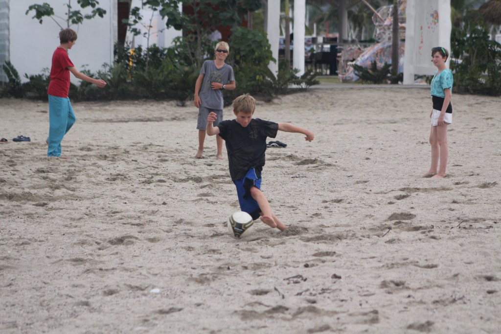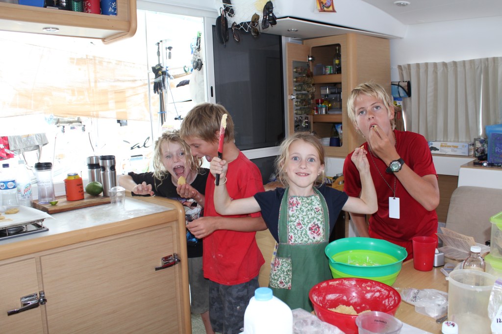 We are still happily enjoying the marina life here in La Cruz. It’s a nice change to have hot water high pressure showers and an easy walk into town with all kinds of provisions. One of our first days here we went to the vegetable market and I loaded up with as much stuff as I could carry, and Carolina laughed at me saying, “you know, they have this twice a week.” We had a great time on the canopy tour on Friday, hopefully you’ve had a chance to check out the photos on facebook. Yesterday there was a cruisers swap meet and one of the local charities for kids had a bake sale so we made some cookies to contribute and Alex was the “moneyman” at the booth. Today will be a boat work day since there is no school, but I’ll sneak out for a little while to go to the Sunday market for some empanadas and fresh squeezed orange juice.