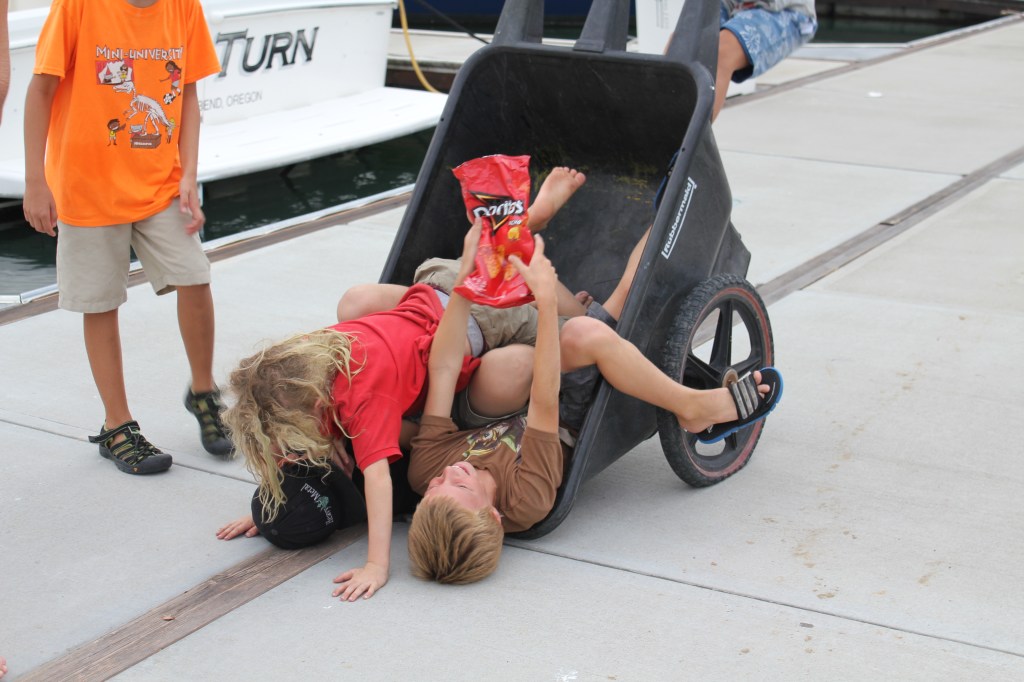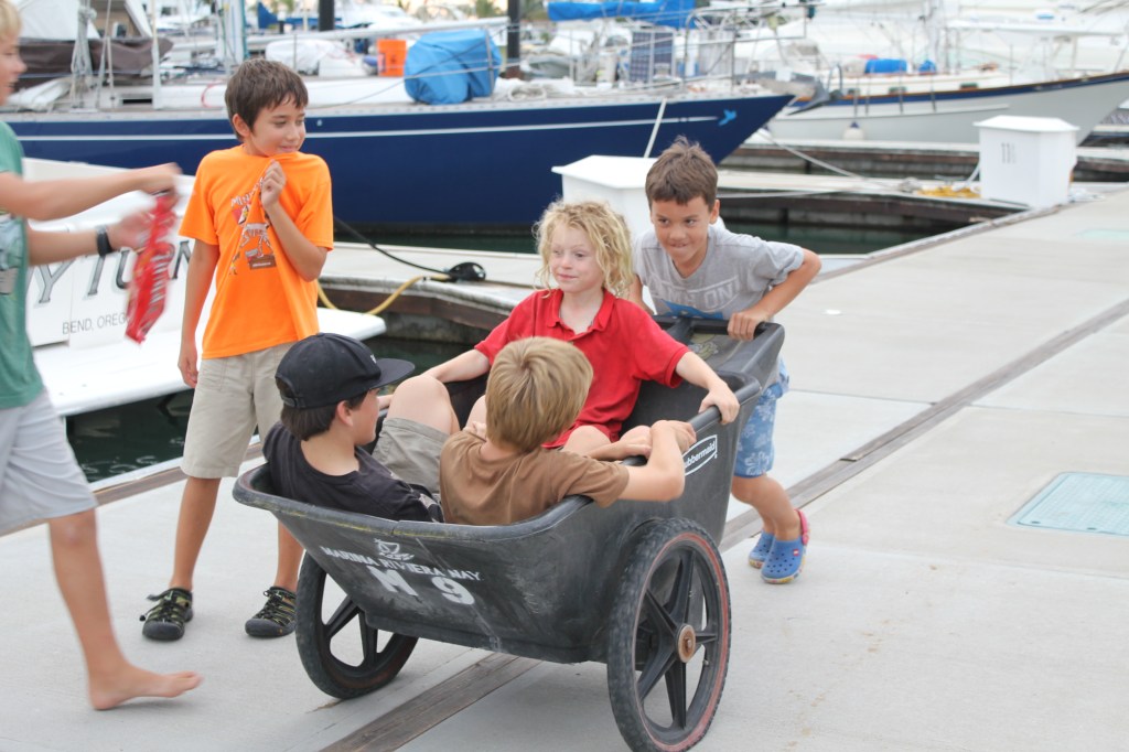 - Alex fell off dock w/ the bike. Tim retrieved it with the dinghy anchor.