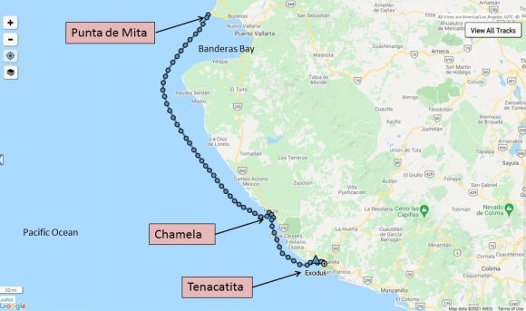 Costalegre is a stretch of the Mexican mainland coastline from Cabo Corrientes (the southern tip of Banderas Bay) to Punta Campos (the southern tip of Bahia de Manzanillo). It literally translates to “happy coast” and it is also commonly referred to as the “Gold Coast.” Although we didn’t get as far south as we would have like, we really enjoyed the anchorages we were able to visit.