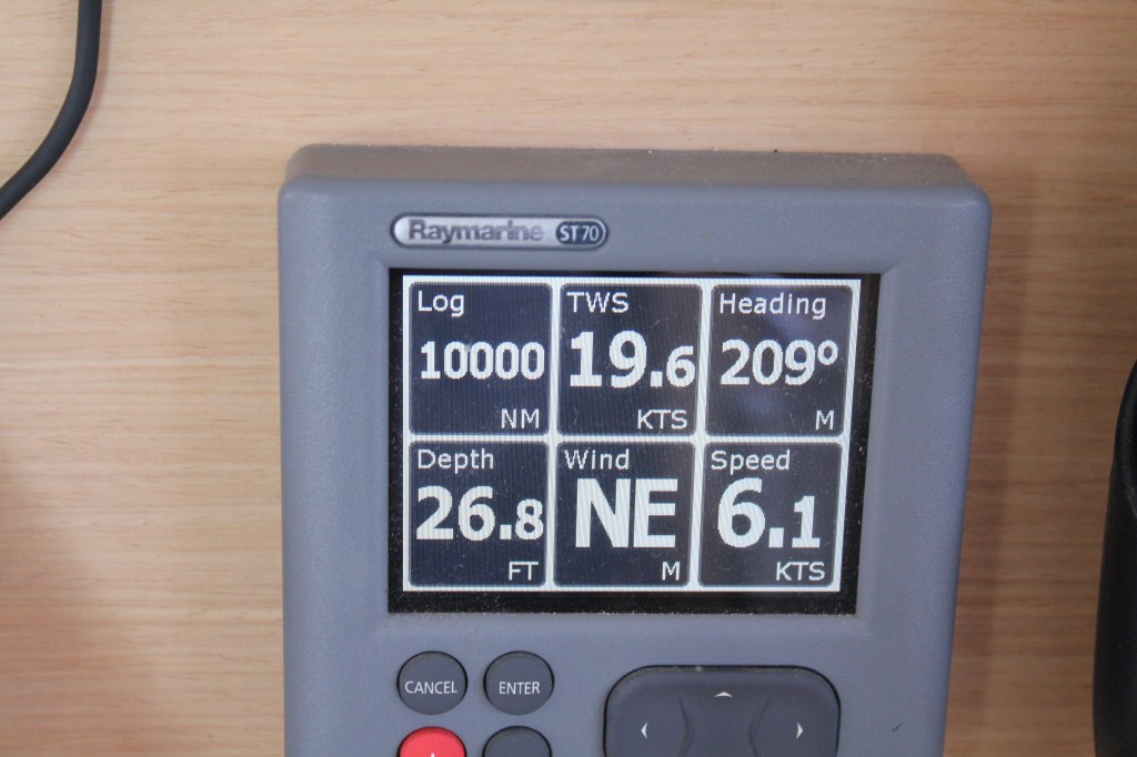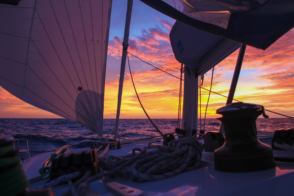 Today, Exodus passed 10,000 miles on her log. It’s not exactly accurate, since it’s dependent on the paddle wheel that gets gunked up when we sit at anchor for longer than a day and if we forget to spin it before we head out it doesn’t always spin. So, it’s a low estimate of Exodus’s total miles, but worth celebrating anyway, and tonight we celebrate once again with sushi. The boys got two more yellow fin tuna, this time even smaller, but the two of them together can make a nice dinner for us (with some veggies on the side). It was pretty windy all last night and into the day, as high as 24 kts. We rocked and rolled pretty good, but our San Felipe passage puts everything else in context. It’s calmed down now and we’re enjoying a comfortable run with just the genniker flying. We did a time change today, moving back an hour. The Marquesas are UTC -9.5 so it’s a difference of 3.5 hours from where we departed Mexico. We’ll likely do one more time change underway and then eat the last 1.5 hours on arrival. The time change will mean I won’t have to go to bed when it’s quite so light out and the sun will rise earlier in my morning watch. Tim said it was arbitrary to him, so I went for it.