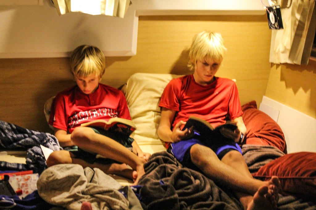 The guys caught another tuna last night at dusk just when Tim and I were getting to ready to change sails for the night. It was a historic moment, though, because once they got the fish on board, Brenden looked at me and said, “I don’t really want sashimi again.” Who would have ever thought a day would come when Brenden wouldn’t want sashimi?! I’m not going to write much tonight; Tim and I need to figure out what our sail plan is going to be tonight and then make the changes. Just know that all is well on-board Exodus.