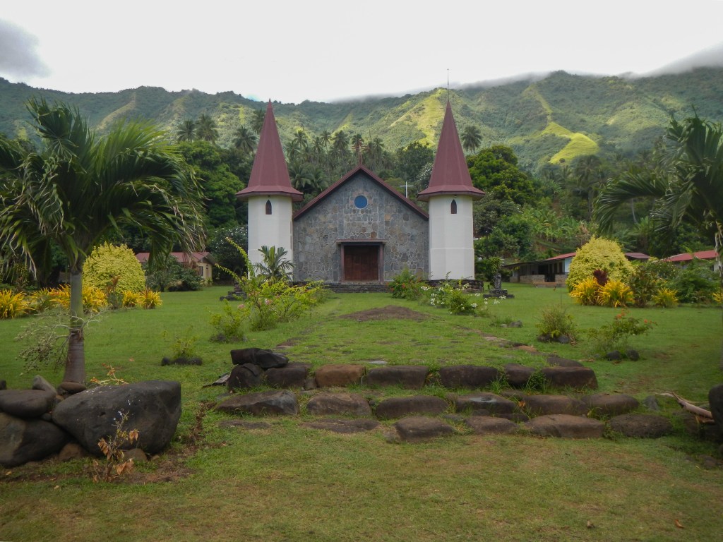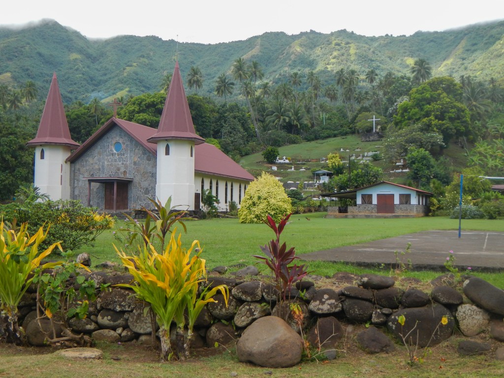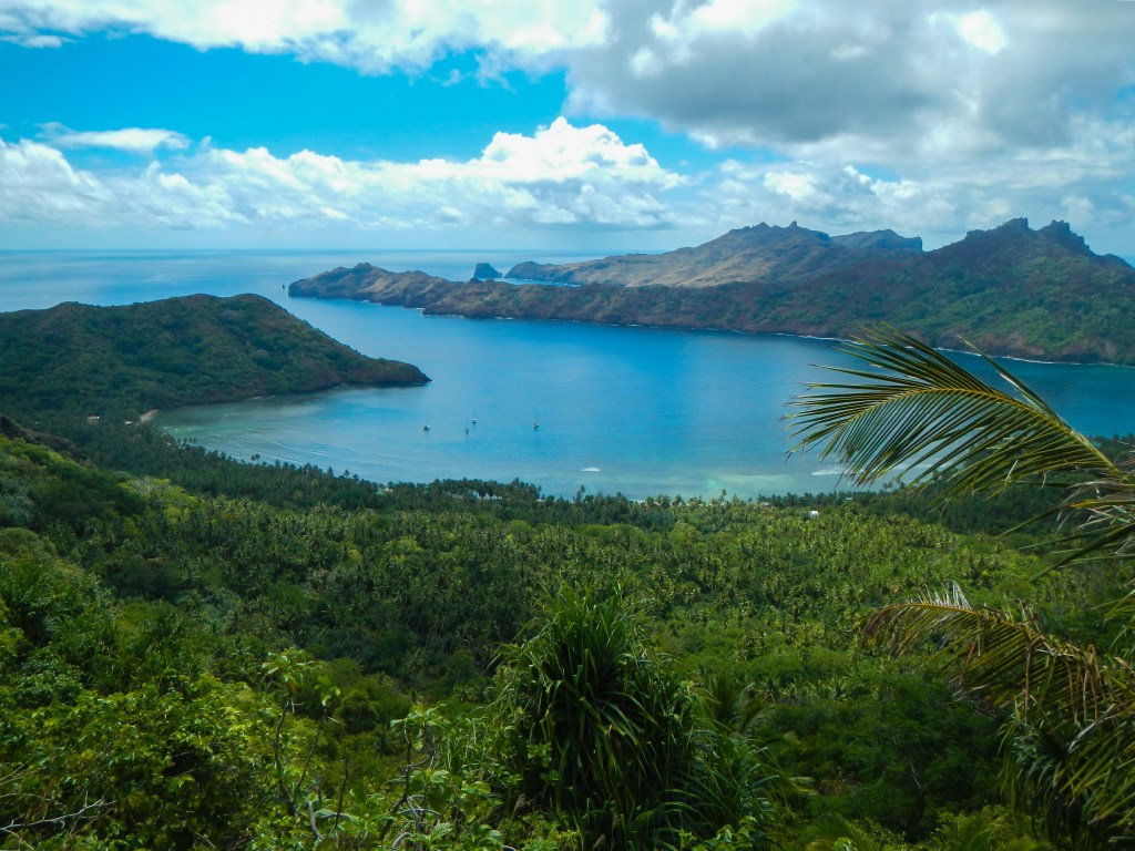 This was my second favorite anchorage in The Marquesas (after Fatu Hiva). I only regret that we saved it for last and didn’t have nearly enough time. We only have 90 days on our visa for all of French Polynesia and we were pushing 5 weeks in the Marquesas, so it was unfortunately time to go. But we did manage to hike over a ridge to the next bay to a town to buy baguettes and hike to an organic vegetable farm and pick our own veggies. We left with 4 stalks of bananas and 40+ mangoes, so we hoped to give some to the locals in the Tuamotus (spoiler alert, our first motu was Raroia and we didn’t meet any locals, so we were forced to eat all that fruit ourselves. We were on banana quota patrol.)