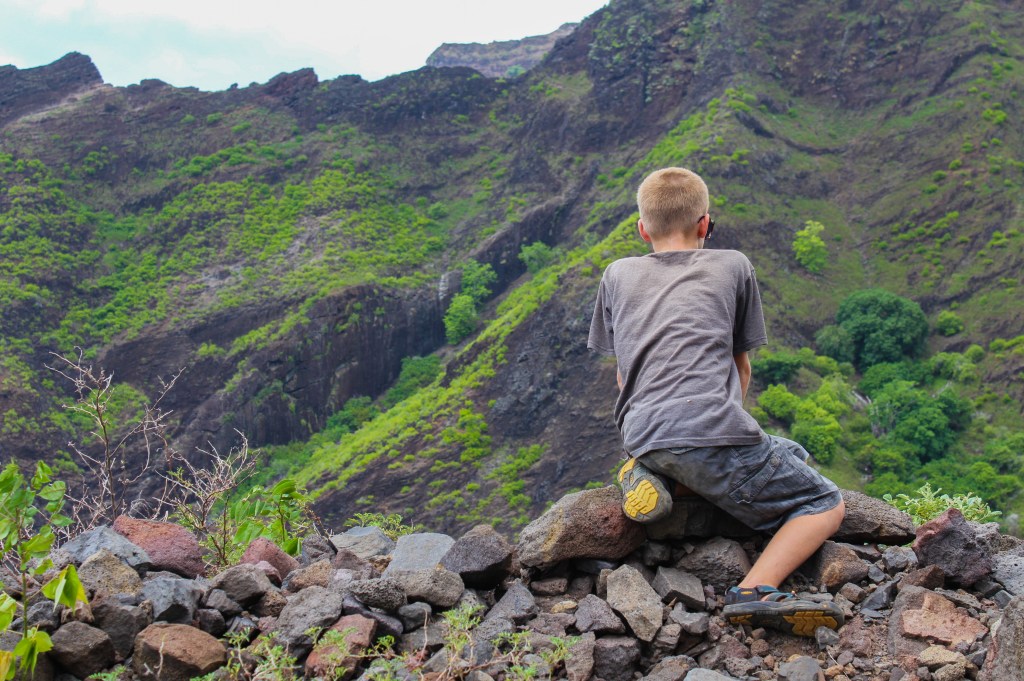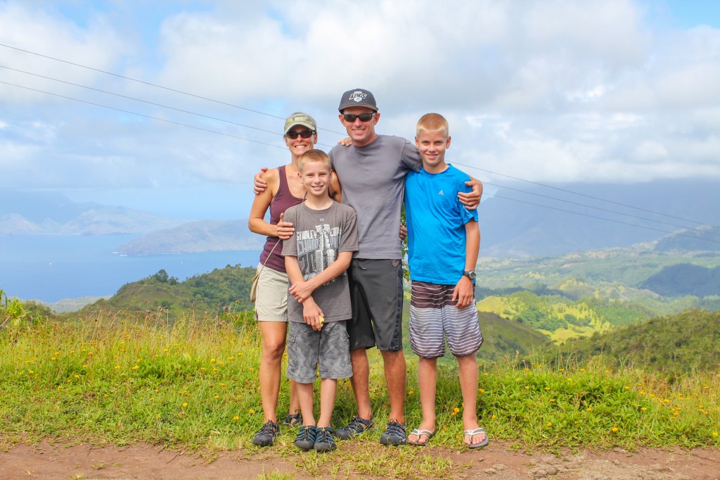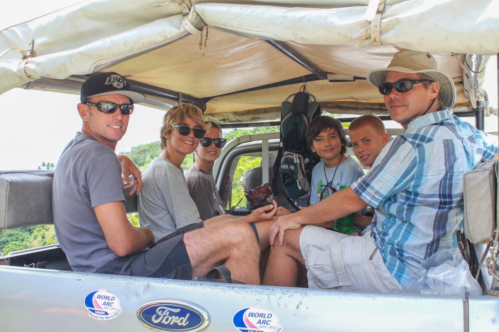 We stayed a little longer in Atuona than we likely otherwise would have, because we wanted to go on a group island tour, and we pulled it off for Tuesday, 8 April. The crews of Exodus, Lady Carolina, and True Blue V all piled inside and outside of Marie Jo’s pickup truck taking up all available sitting space. The back of the truck was covered and had benches, but since a lot of the route was a bumpy dirt road, it was still rather uncomfortable, and we made all the kids sit back there and then cycled the adults through.