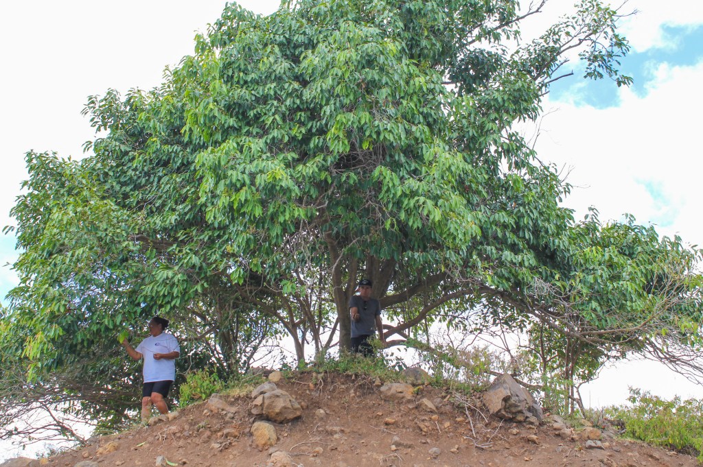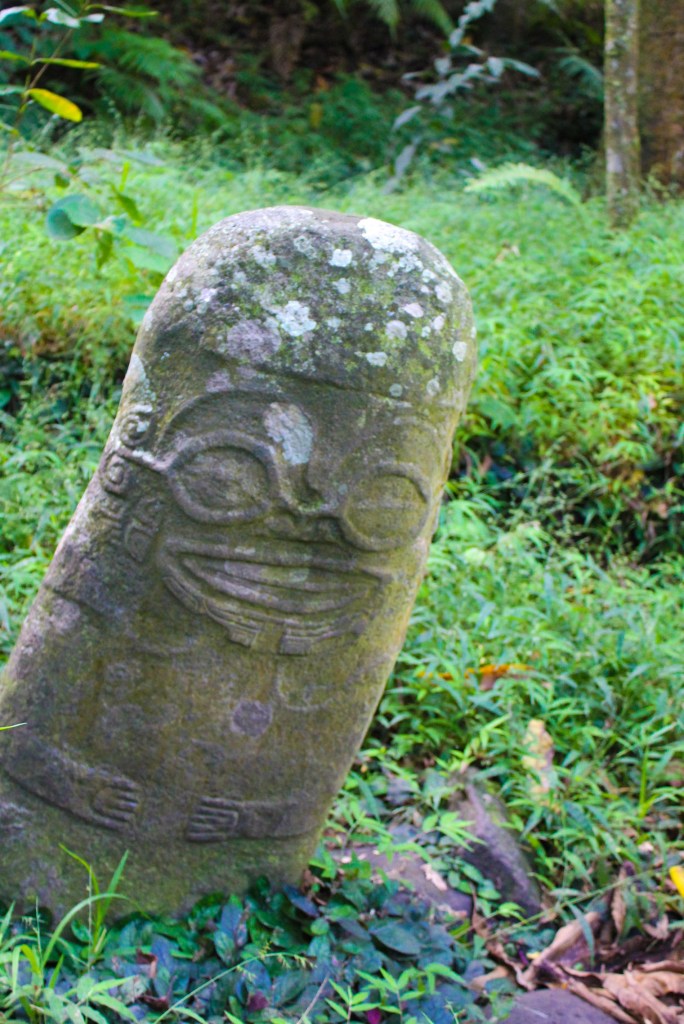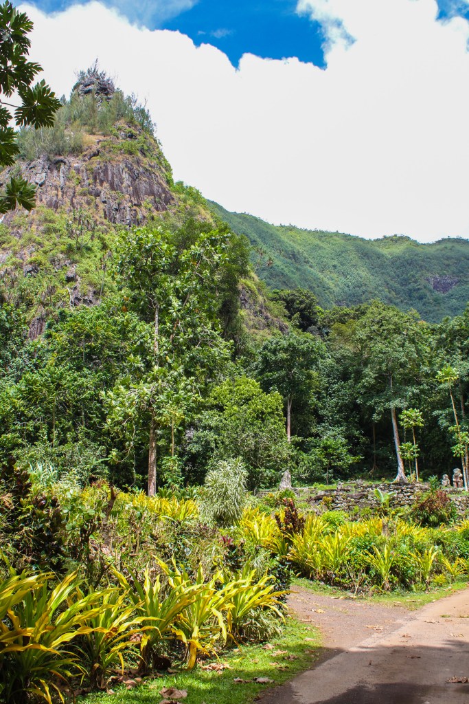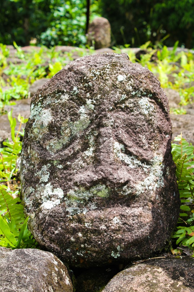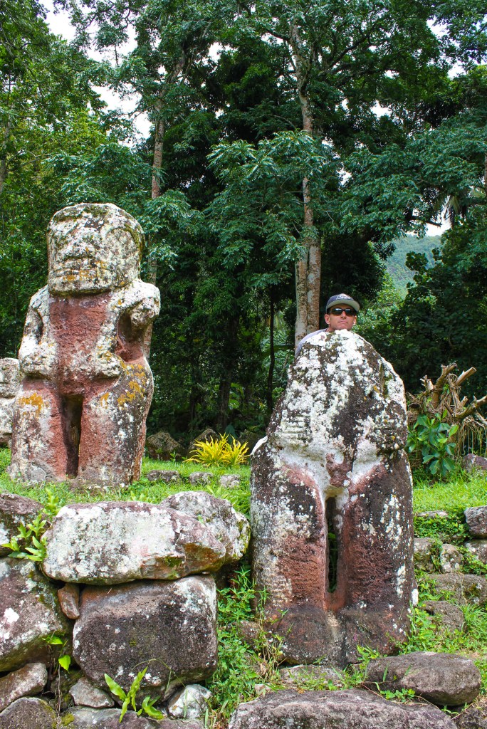 We made better time on the way back because we made fewer stops, but we did stop somewhat close to Atuona, to take a look at the smiling Tiki. It was a short trek into the “jungle” and it really was a smiling tiki. It was small, only coming up to about mid-thigh, and it had a rounded head, making it look like the minions in the movie Despicable Me. We took all the obligatory photos and then proceeded to gather all the tiny chili peppers we could find.