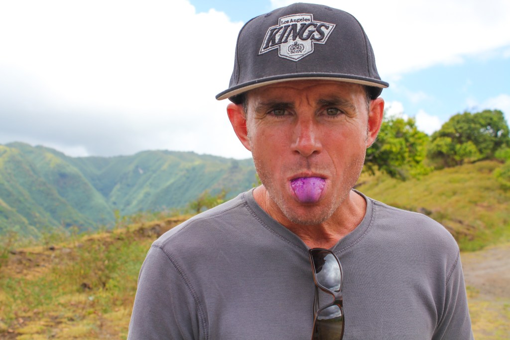 After our encounter with the fruit stand, Marie Jo must have realized how much we liked the local fruit, so she would stop anywhere there was something we could pick. First up were the dark purple fruits that looked like large grapes that she called Pistache but were in no way like a Pistachio nut. They weren’t very sweet, and I thought they made my mouth feel kind of dry and gritty. The boys (including Tim) like how they turned your entire mouth a dark purple. We also stopped to pick limes, star fruit, and tiny little chili peppers. We all had a lot of fun, and we felt comfortable since Marie Jo was choosing the places to gather fruit that it was OK, and we weren’t stealing anyone’s property. Along the way we had some amazing views of various bays.