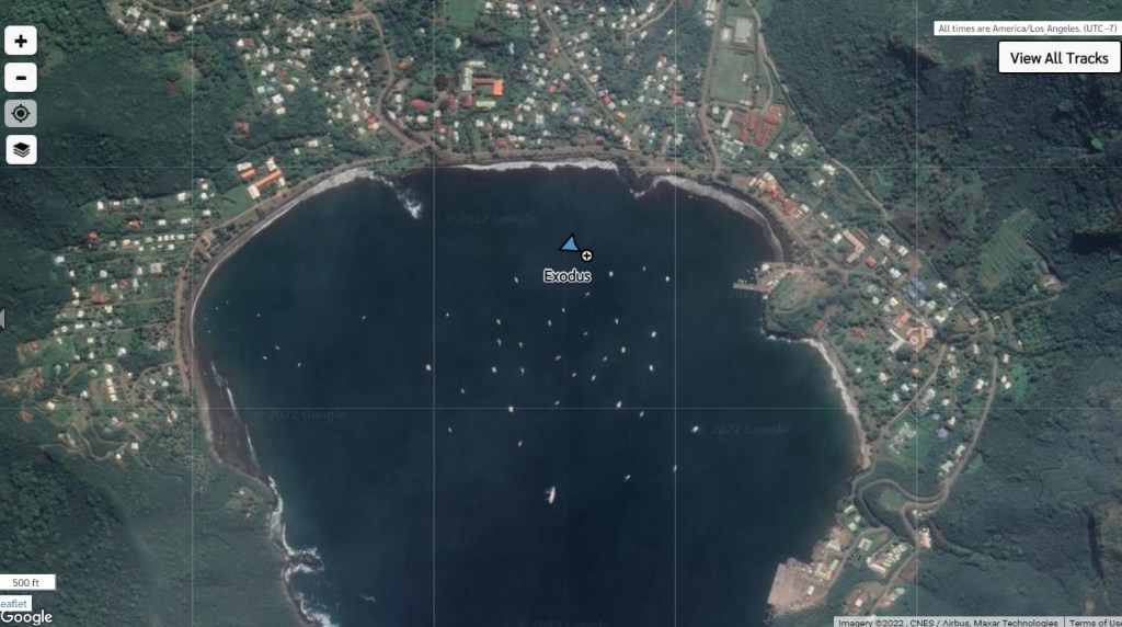 We just arrived in the main anchorage of Nuku Hiva called Bai Taiohae, and we have wifi!!! We’ll be going ashore for awhile, but hopefully I’ll get to upload photos and movies by days end.
