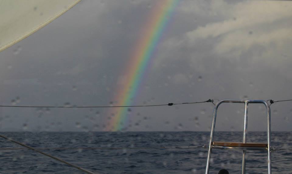 The second day the wind moderated a bit down to 23-24 kts and then after that it was a pretty consistent 15-20. The worst part (other than the boat motion, of course!) was that we had to keep hatches closed due to water splashing onto the deck, so it was bloody hot in the salon and cabins. We encountered many squalls along the way along with a new phenomenon we hadn’t encountered before. On the backside of a squall after it had passed by us the wind would totally die. I mean dead calm. It was like the eye of a hurricane or something, and we even had to fire up an engine a few times to get out into the wind again. Even with all of these “squall shadows,” as we started calling them, we made really good time. We had planned for a four-night passage, and since timing our arrival for a slack tide was important for entering the pass, our fast speed early on was a bit concerning, and the rest of our buddy boats slowed down almost immediately. At that point, we decided to proceed without concern for our arrival time, just reef for safety as we normally would, and as we got closer if it became obvious, we couldn’t make it in three nights then we’d slow down. Going into the third night we were liking that decision because it looked like we’d make it at just the right time the next day if we could keep up a reasonable speed, which we did.
