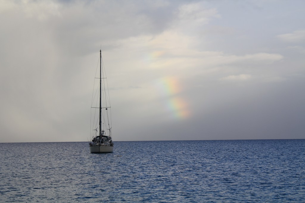 […] Tahanea is an uninhabited atoll, and it is a national park to protect a type of rare bird, so we thought this would be the most remote of the atolls so far, but we were wrong.  After the slow overnight sail to Tahanea, we still arrived too early, but we decided to enter the pass even before the light was ideal.  This was our first time going through a pass with the current against us, and the max we saw was about 3 kts.  We dropped anchor in a spot near the pass to wait for more direct sunlight before navigating across the lagoon, and while we were relaxing there, we noticed a boat on AIS called Field Trip.  We were pretty sure they had kids, since if we were remembering correctly, we had heard of them from a boat called Tulu that we had met in Nuku Hiva.  So, of course when Field Trip got a radio call from someone else inside the lagoon, Tim had to follow along and listen.  We are once again stalking other kid boats on the radio.  We gleaned that yes, Field Trip is a kid boat, and bonus, they were with two other kid boats across the lagoon.  Tim came out of stalker mode and actually hailed them on the radio (or perhaps he just broke into the conversation on which we were eavesdropping) and talked to them and let them know there were going to be two more kid boats joining them.  […]