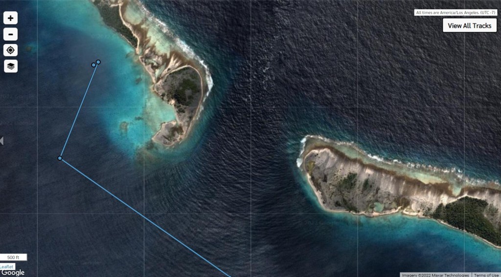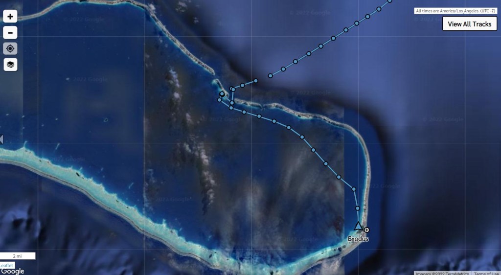 Depart Tahanea SE Anchorage June 3 at 0825 – Arrive Tahanea Pass Anchorage at 1049