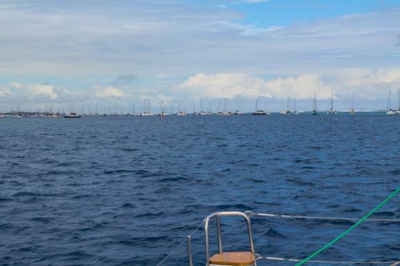 After a month in the remote anchorages in The Tuamotus, it was somewhat shocking how many boats were at anchor or on mooring balls around the marina, on both sides of the channel. It reminded us of La Paz, but more boats and not as much current. Needless to say, the anchoring conditions were crowded, and they were also deep. We found a nice shallow inlet that was actually marked as an anchorage on the chart. We did our usual depth survey, and it seemed perfect. We wondered if everyone else knew something we didn’t since no one else was anchored there. We decided to try it, and it was fine. In fact, over the next day or so, several other boats joined us, so eventually we had the same crowded conditions as everyone else.