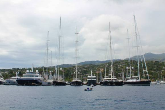 We had heard from others that the marina was full, so we didn’t even bother trying to get a slip. We did have the option of tying up to the wharf near downtown rather than heading down the channel past the airport, but none of our friends ahead of us had done this, and they were all anchored down by the marina. So, we followed like lemmings. Our first stop, before even looking for a place to anchor, was the fuel dock. We knew we needed enough diesel that we wanted to pull Exodus alongside the fuel dock rather than “hand-bombing” the fuel from the gas station in jerry cans. So, I wanted to take care of this sooner rather than later, because more than once we’ve left fuel to the last minute before leaving somewhere and been foiled by a surprise national holiday or no fuel being available. Just next to the fuel dock is the high rent district, where all the super yachts are stern tied to the dock. The one just next to us when we were parked getting fuel was an absolutely beautiful 160 ft (or 180, I can’t remember, but what’s 20 ft really, oh, just half our boat) mono-hull sailboat called Mondango. It didn’t take long before the skipper came over and started talking to Tim. Turns out he noticed the boys, and he was interested in our cruising story, since he has a boy just about their age, and wants to bring him aboard some time. He was pretty relaxed, maybe because the owner of the boat had just left after being with them for a while, so he and the crew were getting a break. He invited us for a tour, which Tim took him up on. A few days later, Tim and boys went over for a thorough tour, and the boys were really impressed. The things I’ve heard about were that they have a freezer just for ice cream and a freezer just for trash. And they also have an extensive camera system, and they could see Exodus on the display via the camera up the mast. I’ve asked Alex to write an essay about it, so hopefully that will be forthcoming.