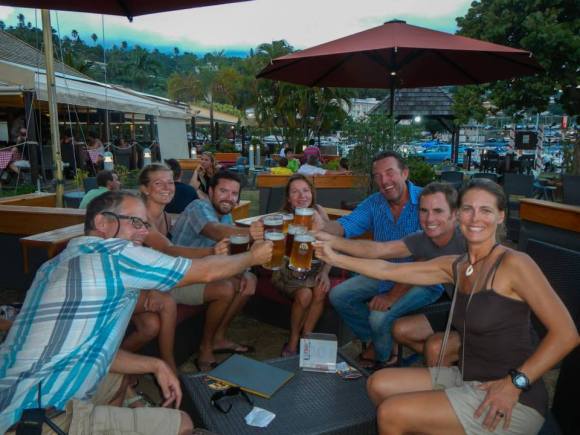 In general, Papeete had the luxuries we are used to from home. We spent several nice evenings at happy hours at a place called “The Dinghy Bar” at the marina. They had 2 for 1 microbrews, and it was the best beer we’ve had since leaving home. They would give you a ticket for your free beer when they brought you the first one, and you could still cash it in after happy hour was over. So, we’d order extras, and as a group it seems like we’d always have a stack of tickets on the table by the time happy hour ended. Some people tended to use more tickets than others, and you know who you are. π