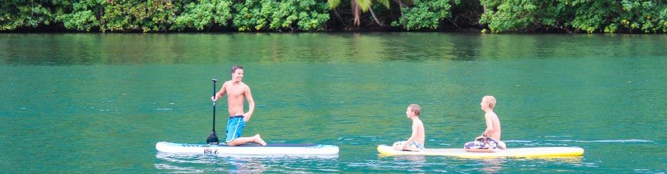 We did more than watch (or listen) to the Kings games while Andrew was with us.  As I mentioned earlier, we played on shore, went snorkeling and hiking (ok, walking), and we even rented a car and drove around the island.  We snorkeled around some coral heads inside the reef near the anchorage at the mouth of Opunohu.  It was some of the worst snorkeling we have done.  Visibility was poor, coral was mostly dead, and the fish were few and tiny.  Funny thing is that Andrew didn’t care or know the difference, and he told us to stop complaining about it.  He was such a good sport about the walk and the car ride, and his presence made those activities so much more fun.  The boys enjoyed Andrew’s company, but in different ways.  Brenden likes Andrew, but Alex wants to be like him.  Brenden likes to be around Andrew, but Alex looks up to him (even if he’d never admit it.)  They had fun playing together, and I had fun watching them play.  One of my favorite moments was when they were all three out there playing on our two standup paddle boards.  There was sheer joy and Alex and Brenden’s faces having Andrew out there messing around with them.  They missed him when he left.