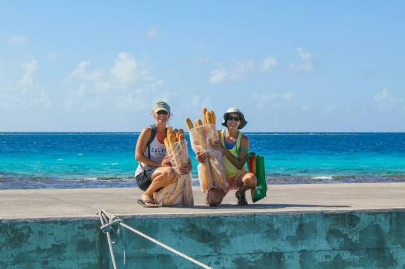 I didn’t quite run empty handed today. In one hand I had a VHF radio, because telling the boys to set a timer for 40 minutes and then look for me at the dock wasn’t quite working out. In the other hand I carried my bread bag, because I would stop at the Super Fare Nui (grocery store) for baguettes after my run. Baguettes have become such a staple for us since arriving in French Polynesia, and we’ve learned that all baguettes are not created equal. The best ones were in Atuona and Papeete. Atuona because they were the first ones we had after a 22-day ocean crossing, and even if they weren’t really that great, I remember them as amazing. Papeete, because they really were amazing. Just the right amount of crunch in the crust and softness in the bread. The worst ones were in Makemo. Way, way, way too much crunch in the crust and way, way, way too much softness in the bread. Anyway, baguettes are the new tortillas. That makes sense, considering we spent a year in Mexico before coming to French Polynesia. Adapting from tortillas and guacamole to baguettes and brie has been mostly a seamless process. We just sort of go with the flow. When in Rome, do as the Romans do, or some cliché like that.