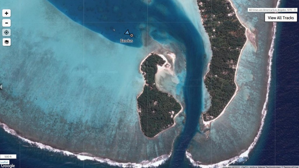 - Pass not too bad – max 2.5-3 kts current out. Narrow channel to town, but well-marked. 2 other boats here including another Lagoon 400.