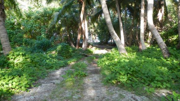 This morning I paddle boarded over to the motu to investigate whether or not I’d be able to go for a run, and the only sandy landing spot was in front of someone’s house. I needed a sandy rather than rocky landing spot, since our paddle board is of the blow up variety, and pointy rocks are bad for it. I walked up toward the house and saw a man working outside on his copra harvest. His name is Harry, and he does not speak English, so in my very bad French I asked if it was OK for me to leave my paddle board and if there was a road I could run on. He gave me a little stool so that I could sit down while I changed my shoes, and I told him how I live on a boat with my family. That is about the extent of my small talk ability, so the conversation pretty much stalled after that. I did ask if there were any children on the island, even though I already knew the answer, just to have something to say. He walked me over to where I could see the road, and then I was off. It wasn’t really a road, but more like an offroad trail for jeeps and trucks. Being an atoll, it was perfectly flat so the running was more effortless than on Maupiti. Well, except for the rats that I saw scurry from the path, and oh my, the flies. And the pack of dogs that wouldn’t let me pass one of the houses that they were obviously very protective of. I came across two more men working their copra, and again had a brief conversation using most of the French I know.