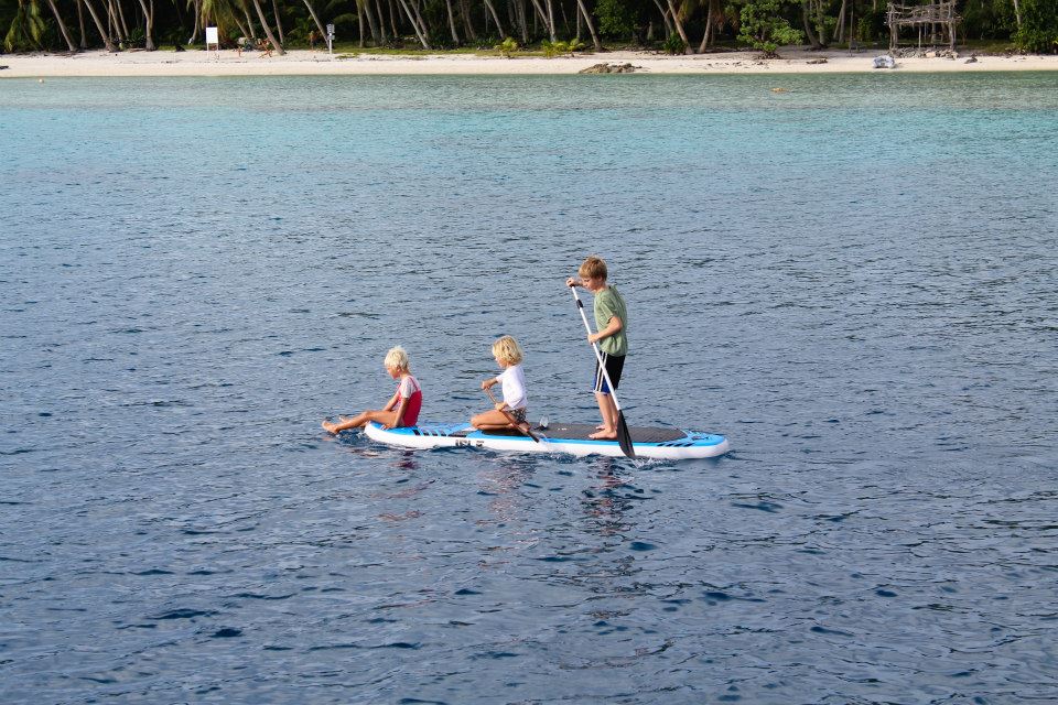 There is another kid boat here from Germany, and they have two young girls, and so yesterday after we got here Tim bribed the boys to go take the girls dinghy surfing. It’s too bad that we still have to bribe them to do stuff like that.