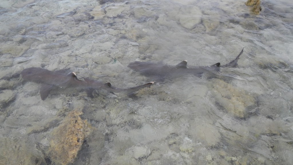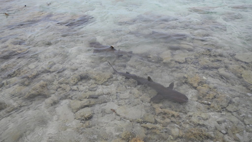 Like Mopelia and the Tuamotus, Suwarrow is an atoll, but the pass is about as straightforward as they come, with the exception of not being marked at all. So, we rely on our charts, the reports of other cruisers, and most importantly, our eyes to find the coral shelves that lie on each side. We had a bit of a false start though, because we got just about to the pass entrance when we realized our depth sensor wasn’t working. Abort, Abort! We turned around, power cycled all of the nav electronics, because sometimes when we transmit on certain frequencies with the SSB it wipes out our wind transducer, so we thought maybe that happened to the depth one. No, that wasn’t it. We figured out by slowly approaching that we just weren’t picking up depths greater than about 45 ft. So, we went through the pass, and when Tim was in the water checking our anchor, he also cleaned the depth sensor. I’m not sure if he tested it though… maybe I should do that today.