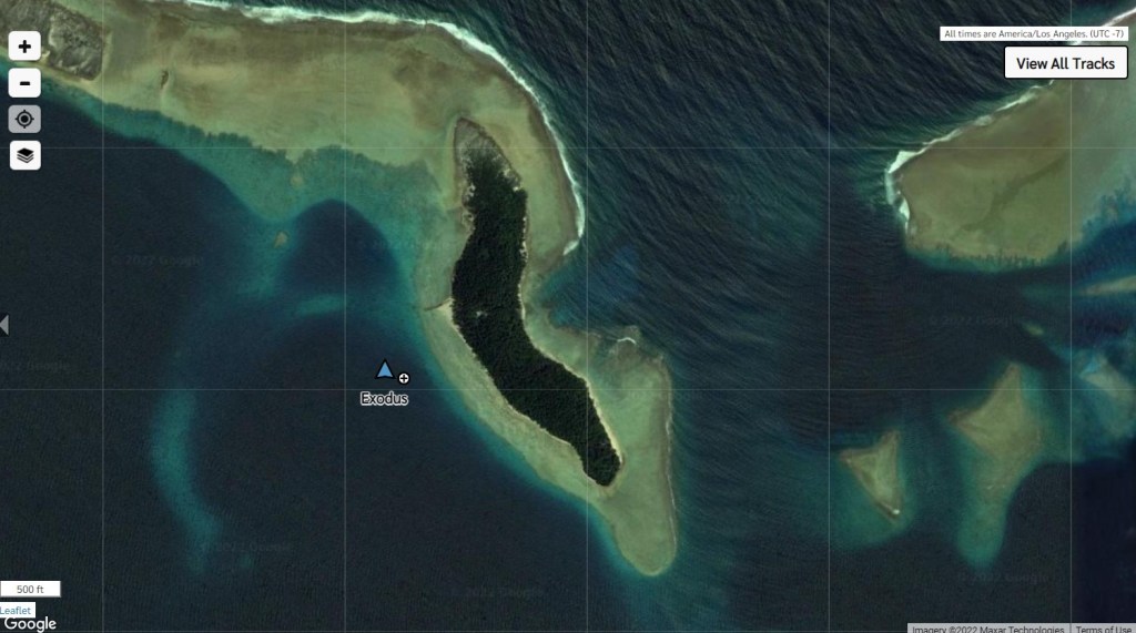 We are about 3 miles out from the pass entrance, so we should have anchor down soon. (I’ll make a post to facebook via the inReach when we have anchor down.) We are really looking forward to arriving.