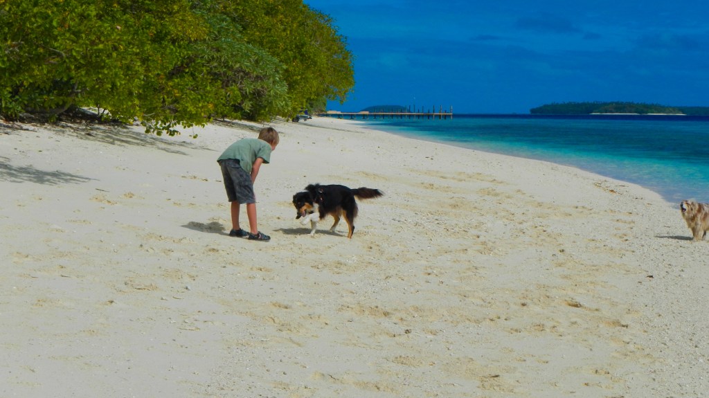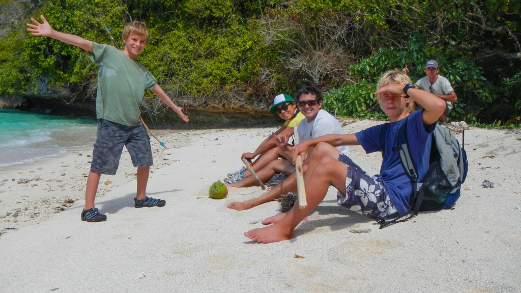Tim and Steve went out lobstering (why yes, that IS a word) again last night, and those pesky lobsters continue to be elusive. In fact, all of the fish are proving to be elusive. Tim has speared but one fish, a tasty one, which we have identified as a sweet lips, but still only one. Gone are the days in Mexico where I never wondered if I should take something out of the freezer for dinner if the boys were out spearfishing. They ALWAYS came back with something, and usually enough to feed the whole anchorage. On the bright side, the snorkeling is absolutely amazing. So clear and tons of fish (small ones, not big enough to spear, of course). I snorkled just off our boat yesterday along the side of the anchorage and it was spectacular. We bought a wildlife guide to Tonga in town, so I had a little extra fun trying to identify the fish I saw, and sometimes I need Brenden’s help (he just has a knack for all things of the sea). I have no idea what our plan is for today other than to keep up with the schoolwork which got a little lax while Yi and Johnny were here.