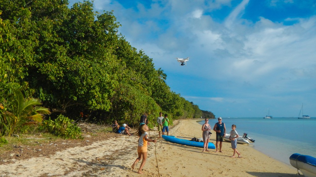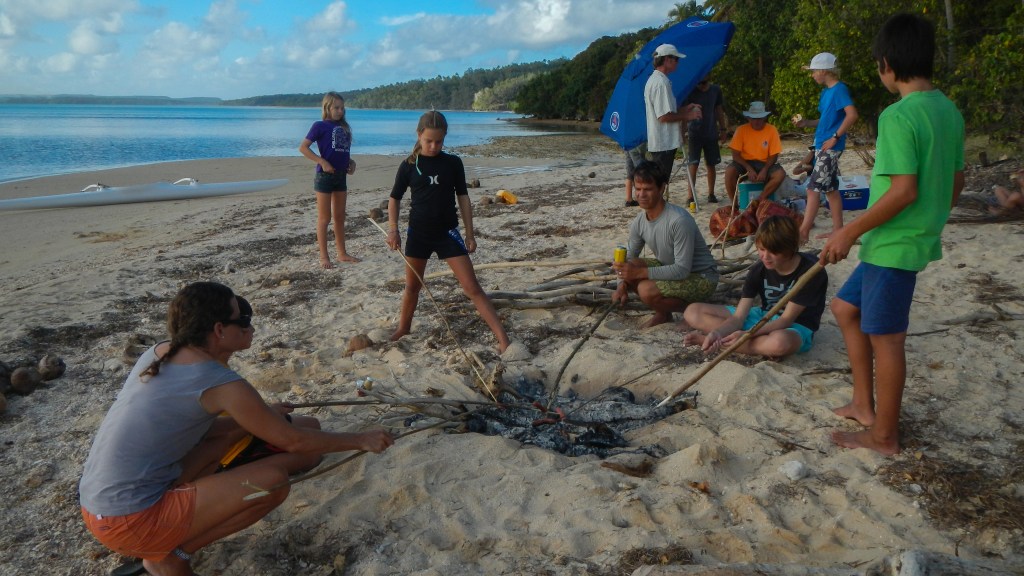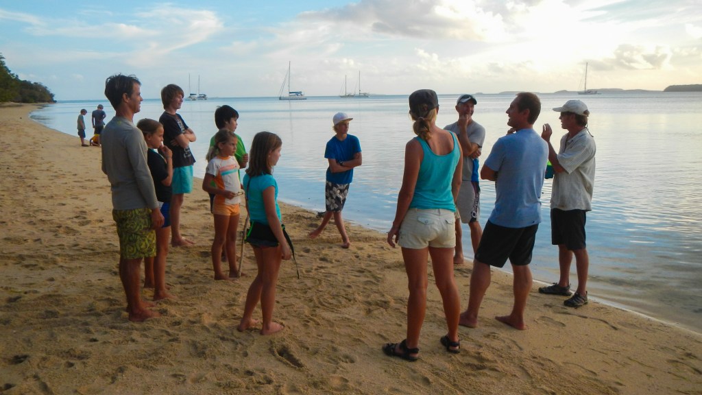 We are anchored in the lee of a small island called Kenutu on the eastern fringe of the Vava’u island group. It is spectacular here. It is a string of small islands, and the surf rushes through the gaps and sends a spray up producing quite a show. The island isn’t very big, but there is a short hike up to the top where there is a view of the rugged Western side, and Tim and I even saw a sea turtle chillin in the surf below. We are with a horde of kid boats right now (five boats, 11 kids), and yesterday was Joel’s 10th birthday, so there was a party on the beach with hot dog roasting and capture the flag. Good times. The night before we had all the parents over on Exodus and all 11 kids went over to Dafne (another catamaran) and the kids weren’t allowed to play video games or watch a movie. Not a surprise that Alex turned into a small kid jumping bag. They had a good time, and we will be sad to see most of this group, including Lady Carolina, leave for Fiji within the next week.