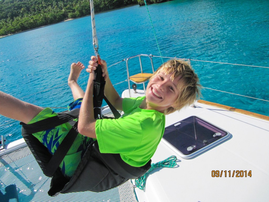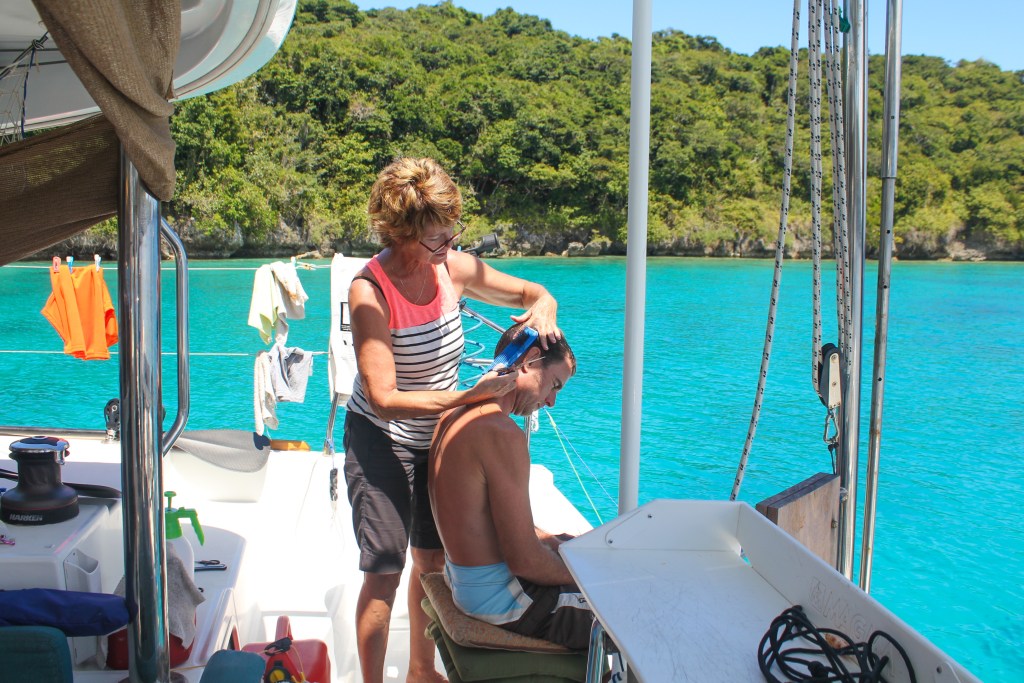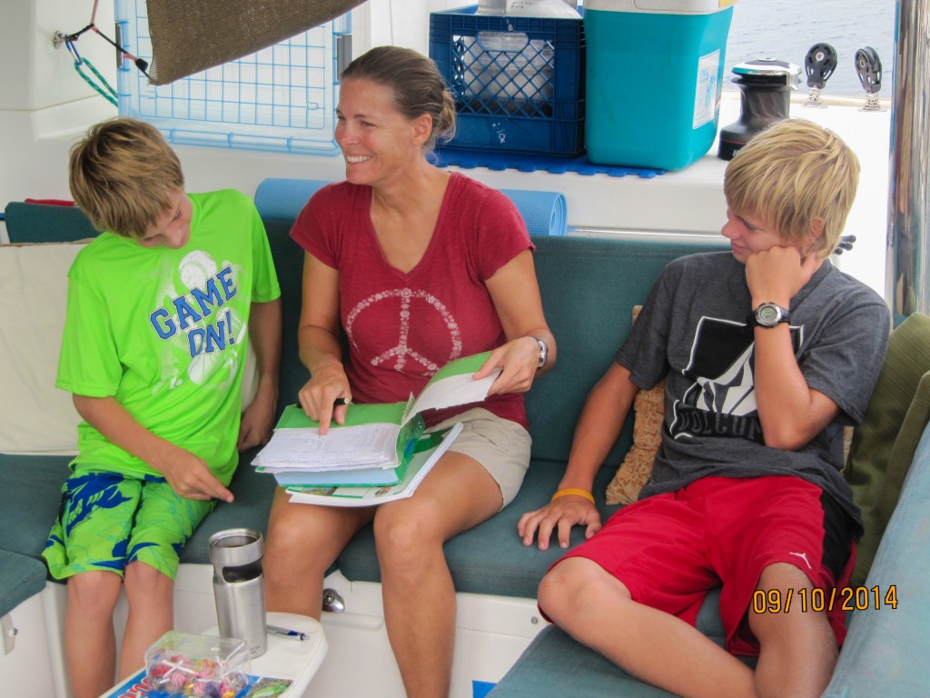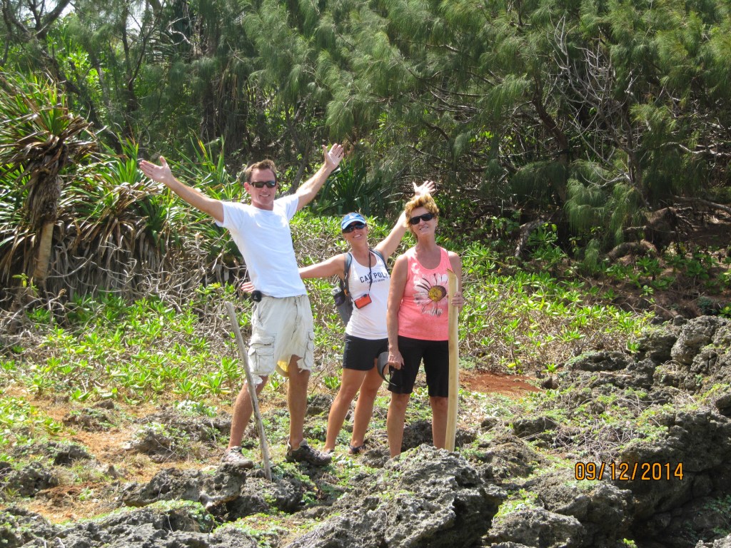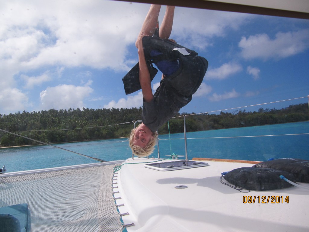 We are out at Kenutu again, because it’s one of our favorite spots. We joined 2 other kid boats when we arrived, and all the kids spent all afternoon on the beach husking and grating coconuts in order to make coconut macaroons over on Dafne. They all worked hard on it, but Alex and Brenden didn’t even mind that they didn’t really like the macaroons at all. We’ve taken my dad and Karen all around both islands (Kenutu and ‘Umumu) for some jungle trekking and spectacular views. Evenings are filled with dominoes, cards, and sometimes some heated political conversation. Of course, Tim and I have been out of it for so long we are at an information deficit. But I guess that could be a good thing.
