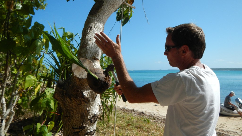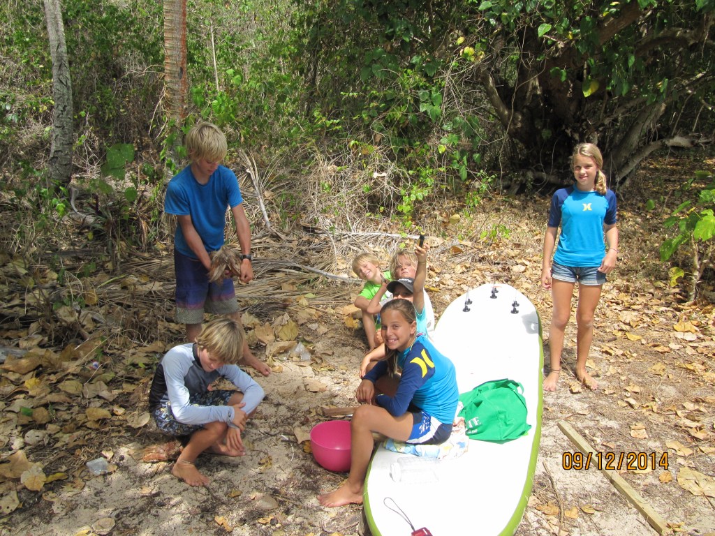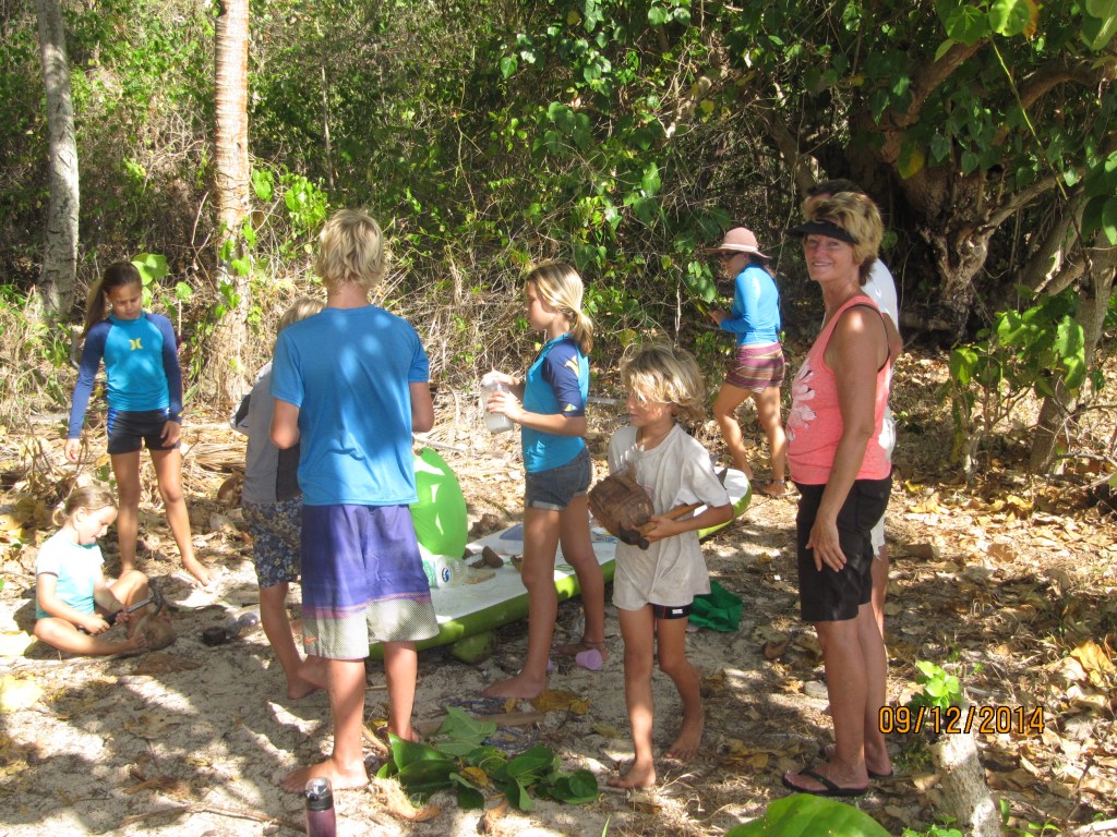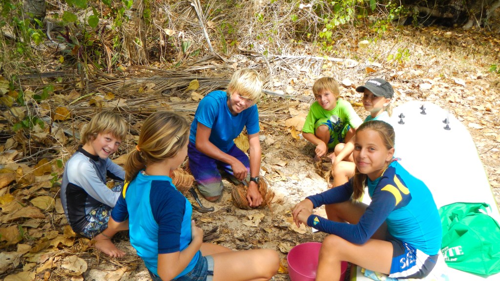 - Kids go to shore all day to husk coconuts w/ Dafne & Elena