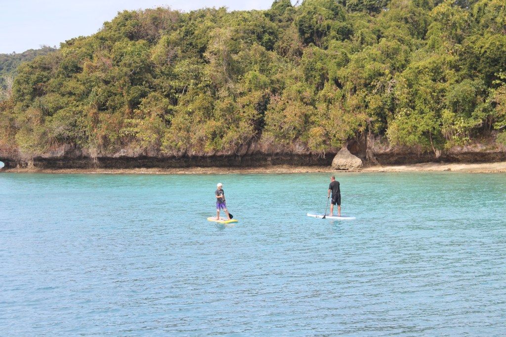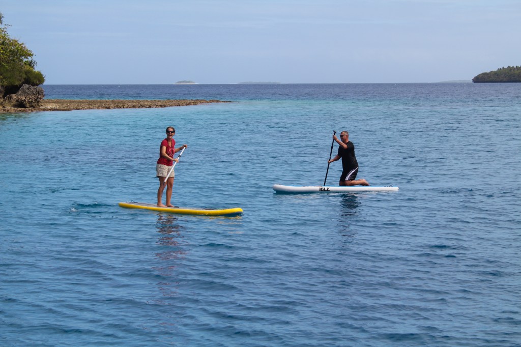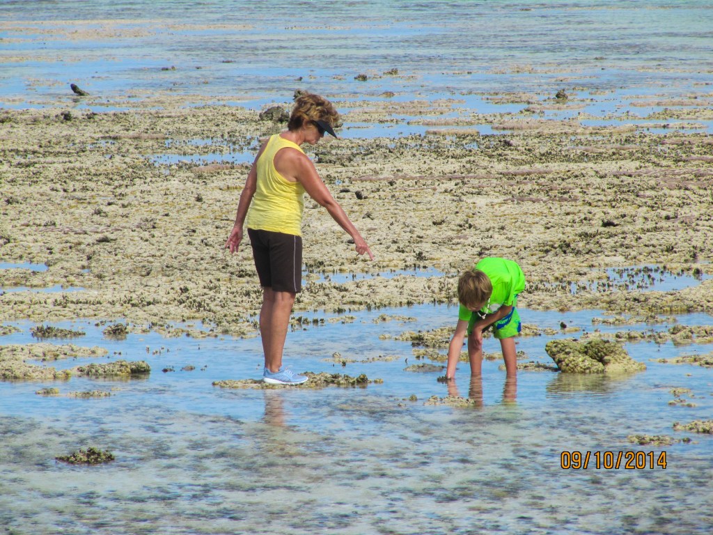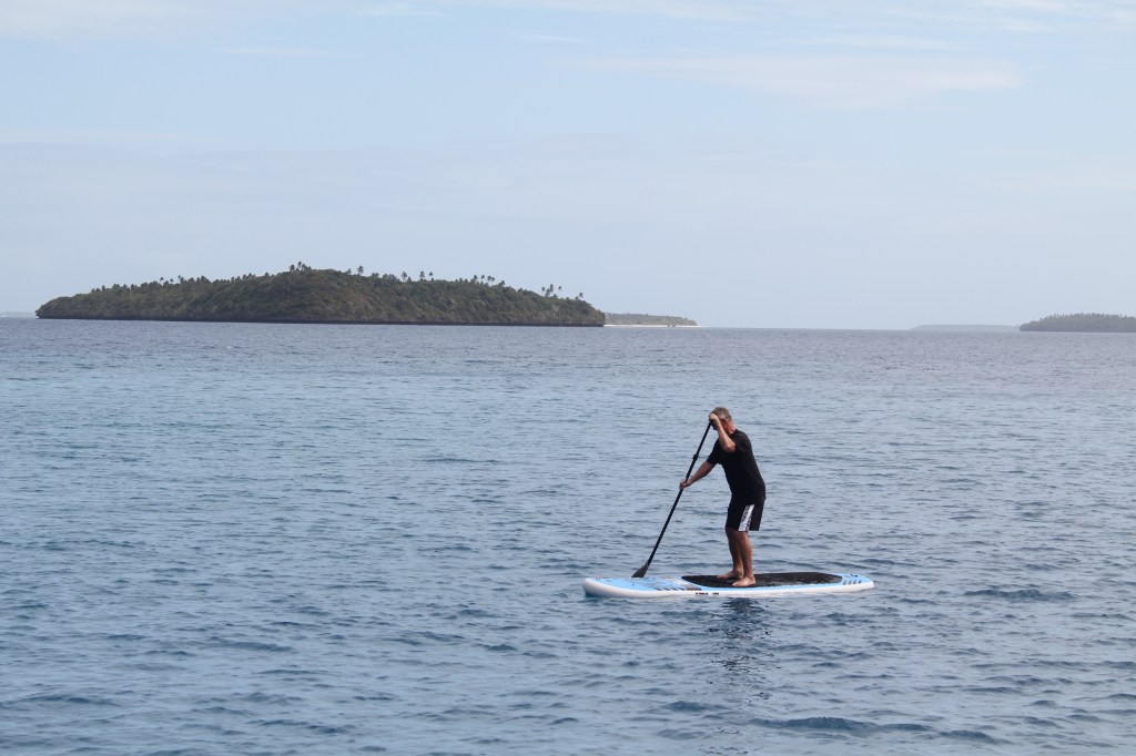 - Papa on the paddleboard. Beach afternoon @ Nuku. Walk the reef & bocce ball.