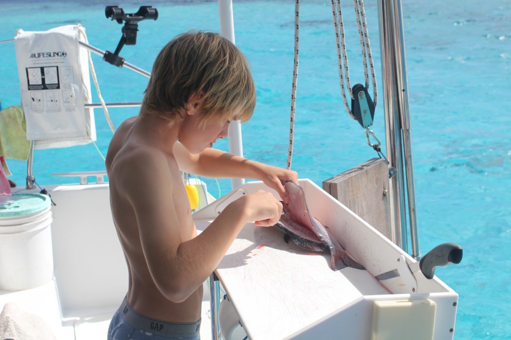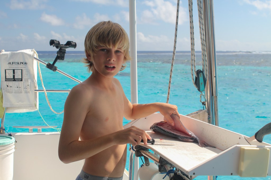 We cleared out of Vava’u yesterday so we are all set to head down to Ha’apai. We were able to get duty free fuel even though we aren’t actually leaving Tonga yet, and I didn’t even have to bribe anyone to make that happen. There’s suppose to be very little wind for the next couple days, so we are going to hang out at one of the southern, less protected islands here in Vava’u so the boys can do some spear fishing before we leave.