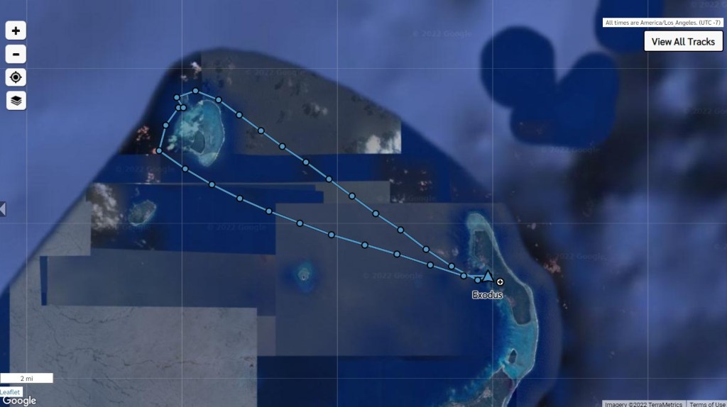 We took Exodus for a day trip about 10 miles to the NW yesterday to a small island called Ofolanga. The island is entirely enclosed in a reef, so we didn’t actually go to the island, we anchored on the outside of the reef for some amazing snorkeling and spearfishing. The draw was that there is a volcanic vent there that heats the water, and although the water did seem a bit warmer in places, I’m really not sure we ever did find the vent. The coral formations were amazing and there were holes and crevices for all kinds of critters to hide. There was also a huge underwater cave with an open roof, but I wasn’t brave enough to go inside. My highlight was following a sea turtle around, and all the breaching whales we saw in transit both ways. Our friends on Iguana came with us, and while Tim shot a nice Trevally, Jack speared a huge dog tooth tuna! Overall, it was a great day, and we even made it back to the anchorage before dark. Today will just be a quiet Sunday, well, except for Tim and Jack who will go spearfish at a “tuna spot” at the north tip of this island. It’s almost like old times with our freezer full of fish, but I don’t have the heart to put a fishing ban on when they are having so much fun.