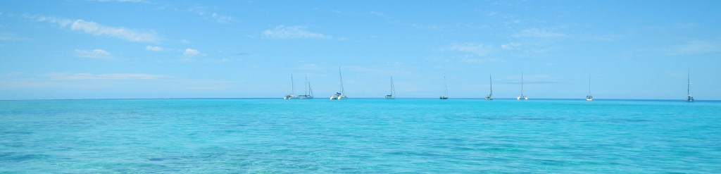We were fortunate enough to be here during very sunny and calm weather, so we felt better about burning all the diesel to get there. The water inside the lagoon is shallow, and it’s like sitting on a giant swimming pool with the most beautiful turquoise water you’ve ever seen. Our first day there we were all entertained by a huge tiger shark that made it’s rounds visiting all the boats as they cleaned their fish, and I didn’t see this, but I heard that occasionally he would get really riled up and start ramming the dinghies. The squeals from all the kids as he was doing this must have been audible from quite a ways away.