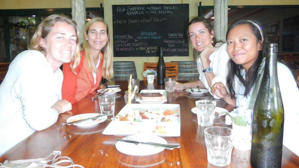 - D – wine tasting with Sarah (Field Trip), Camille (Iguana), Brianna (Tusitala), and Julie (Nirvana). Five wineries – Cottle Hill, Marsden, KaiNui, Fat Pig, Ake Ake