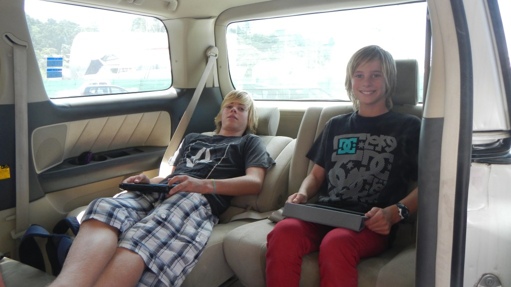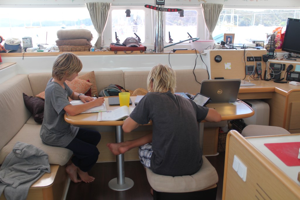 The boys have done their share of boat work, but they’ve also been part of the kid pack that roams the marina. It’s mostly the same group of kids we were with in Tongatapu and Minerva, they have just picked up where they left off. It’s mostly girls and younger boys, and I think Alex might be the oldest of the bunch. It was 52 deg F in our salon when I got up at 6am this morning, and I’m still bundled up even though it’s warmed up all the way to 56 deg. I made a trip into Paihia yesterday, which is the closest town to Opua, and I was a bit disappointed to find myself amongst the entire population of a cruise ship. And apparently the library had free wifi, and you could tell this from far away, because of all the people loitering outside on their smartphones and iPads. The crowd of the ruiseshippers aside, it was WAY more touristy than Kerikeri. I think every other shop was a souvenir shop, and the cafes and coffee shops were bland and generic, like they belonged in an airport or something. I think we are going there for dinner tonight with another family (they helped Tim with the car buying process since they had already blazed that trail) and they know of a good place, so maybe I’ll be pleasantly surprised. I know I’ve talked to a few of you about skyping, but our internet is mostly still very spotty during the day. I think it’s just due to the load of users on the wifi hotspots, because early in the morning it’s great, but by the time the boys get up, not so much. But we’ll keep trying.