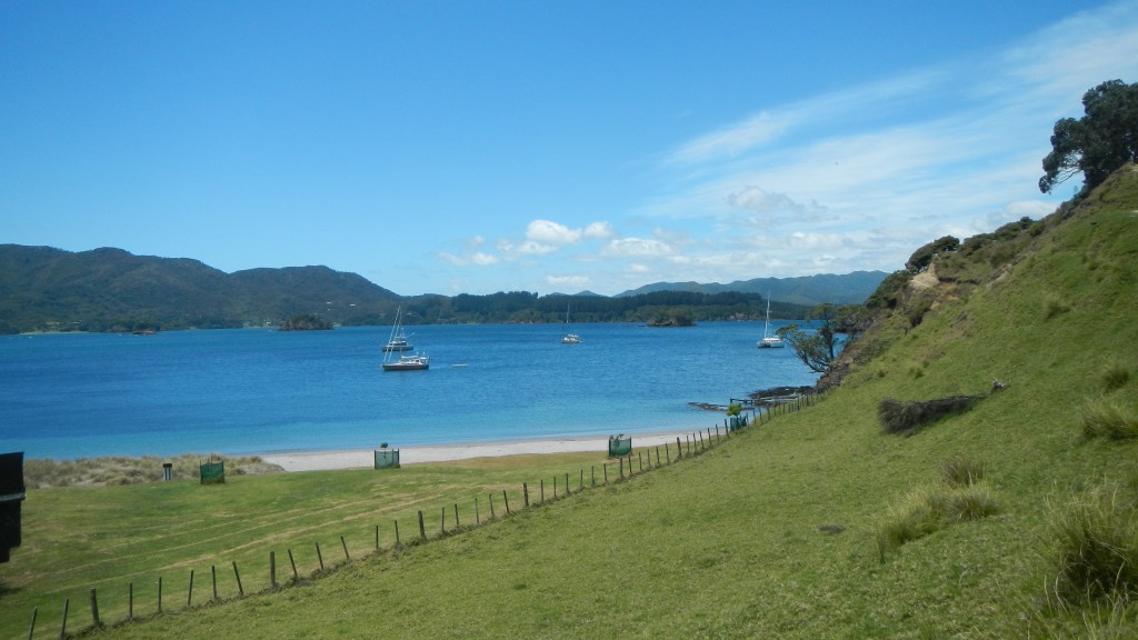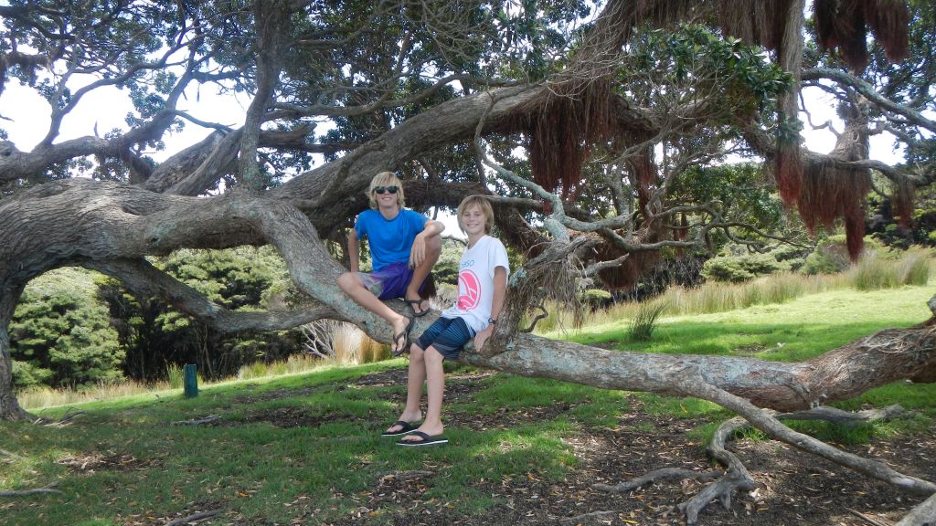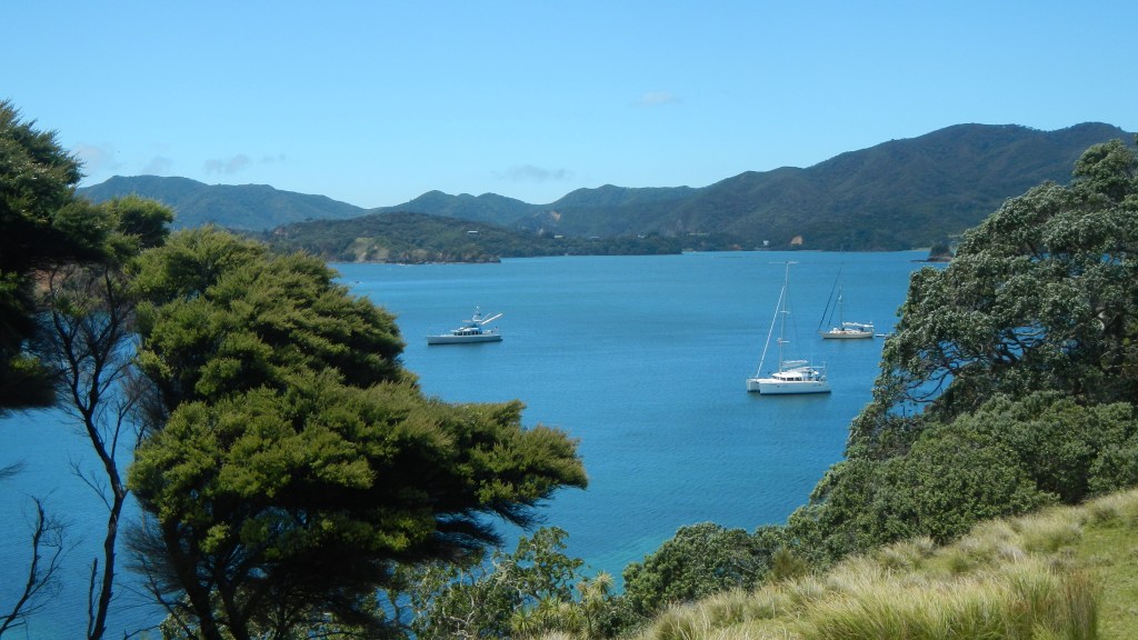 We decided not to go back to Opua yesterday, because Jack met a local spearfisherman online and he’s invited the two of them out to Cape Brett today. So, they’ll be leaving in about a half hour. We are probably going to move to a bay around the corner for more East protection this afternoon because a low is approaching and winds are supposed to howl out of the east for a couple days. Yes, there is not only online dating but online spearfishing. And some of you might remember it was from the Lagoon owners chat room that Tim found Exodus, not even for sale. The internet is good, but we don’t have it here in this anchorage. Hopefully we can pick up a tower when we move this afternoon, because tomorrow is an important day (day after tomorrow for those of you on the other side of the dateline) and I will need to do some face-timing.