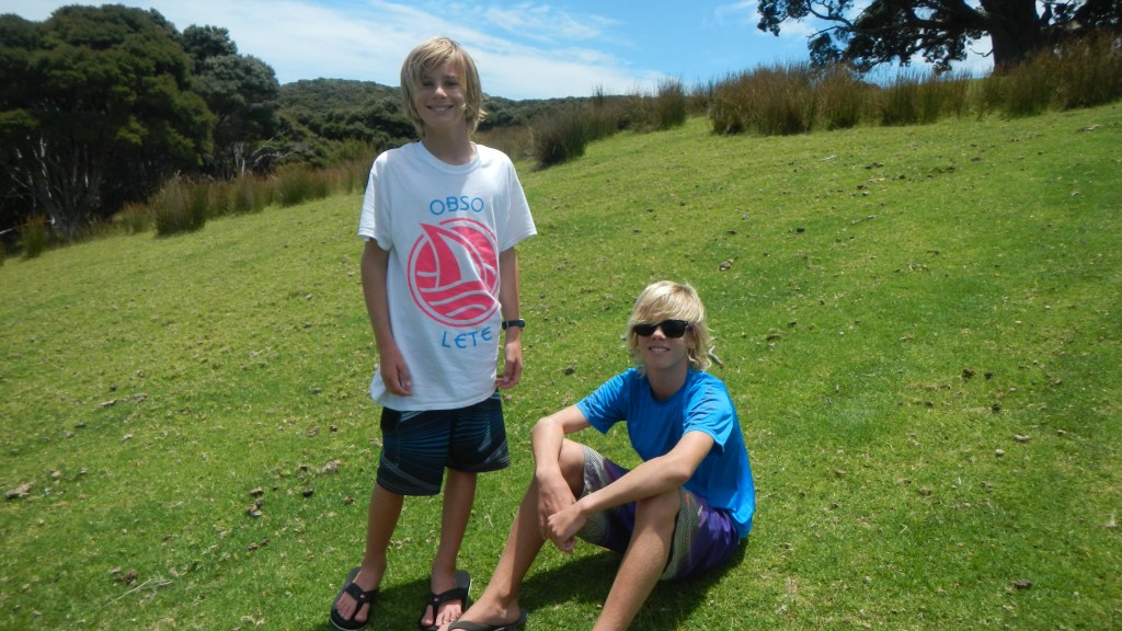 We moved from Deep Water Cove to Urupukapuka bay yesterday morning. Urupukapuka bay is on a small island called Urupukapuka island. The Bay of Islands is reminiscent of Vava’u with many anchorages close together so you have your pick for a blow from any direction. The bay itself isn’t as pretty, but the shore is more versatile in that there is a beach, lots of walking tracks (trails) around the island of varying levels, and grassy areas where Tim and Alex are going to go play catch today if it ever stops raining. I think the last time I wrote I said that Tim and Jack were going to out redeem themselves, and boy did they ever. They came back with two 30 lb Kingfish (Yellowtail) and two huge lobsters. We had quite a feast that night. And then to top it off yesterday after we moved here they went out and got a bunch of scallops. There is a 20 scallop per person limit, so if Tim can’t get the boys to go, I have volunteered to suit up and just sit in the dinghy. That counts, right?