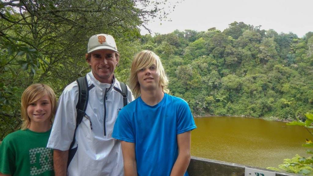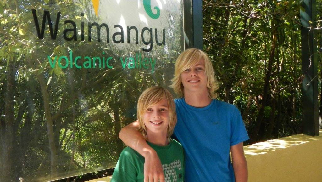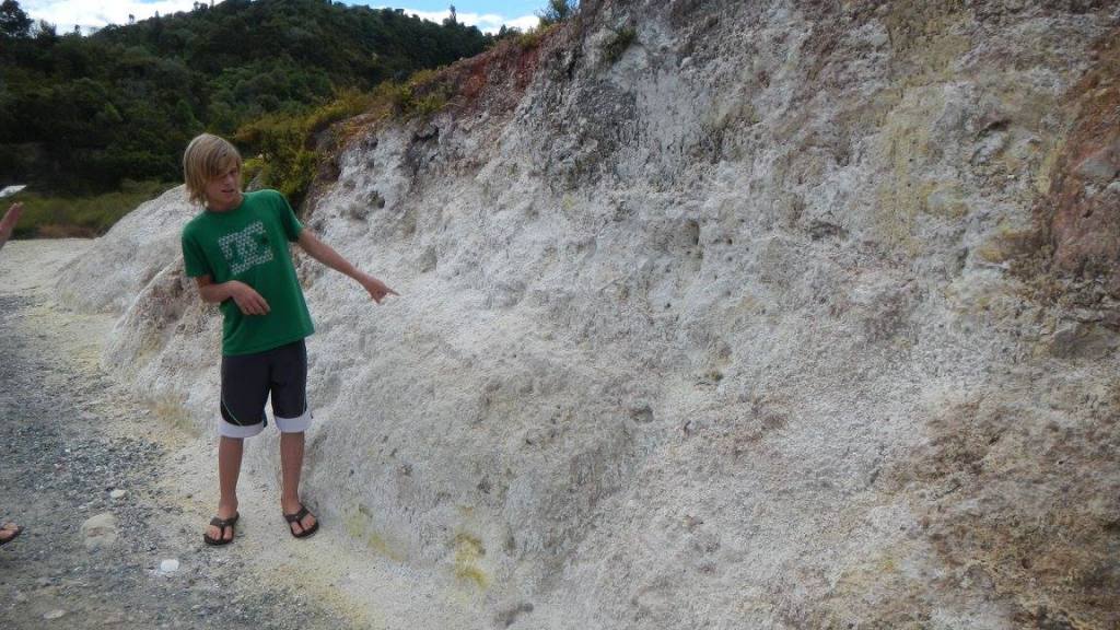 We spent a day visiting Waimangu Volcanic Valley. This wasn’t FREE, but it was well worth it. It was a self-guided walking tour down the valley, and then a bus ride back up. This is the world’s youngest hydrothermal system and is the only one that we know exactly when it was created. On 10 June 1886 Mt. Tarawera erupted.A view down the valley from the top near the visitors’ center.The first major feature we came to was The Southern Crater. Kinda gross looking.First Brenden gets a talking to……then Alex. I figured out later that they were challenged to be engaged and ask me lots of questions about volcanic features. “Hey mom, how hot does this lake get?” “Hey mom, is the water boiling or is that gases coming up?” This went on all day, and it was kinda fun, even though I knew they were put up to it.Brenden thought this looked like bird poop.Frying Pan Lake, the world’s largest hot springOf course Tim had to test the water! Was there ever any doubt that he would? It was hot, you can tell because the lens is all steamed up.This beautiful blue lake is Inferno Crater.A view of Lake Rotomahana which is at the end of the valley (and where our tour would end)Brenden thought this looked like cracked eggs. Smelled like it too, rotten ones.Stopping for lunchThe end of the tour. Waiting for the bus.These next three photos were not taken at Waimangu. They were taken at a public park in Rotorua called Kuirau Park, and access is FREE. There were even a couple pools you could soak your feet in.