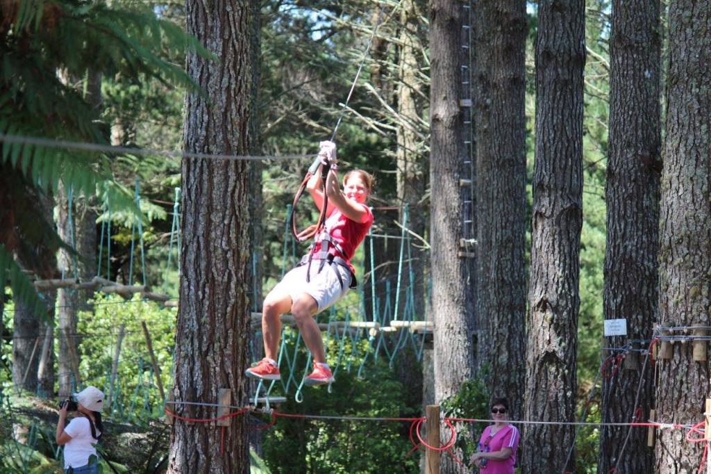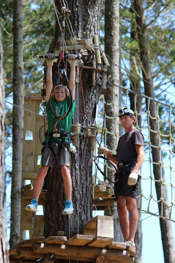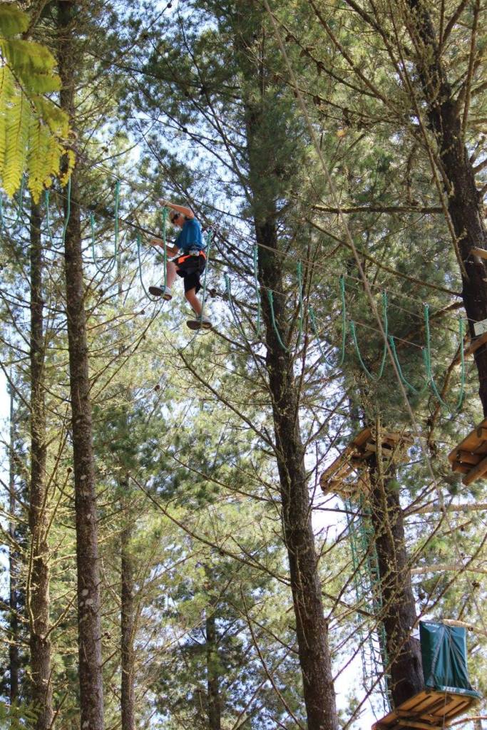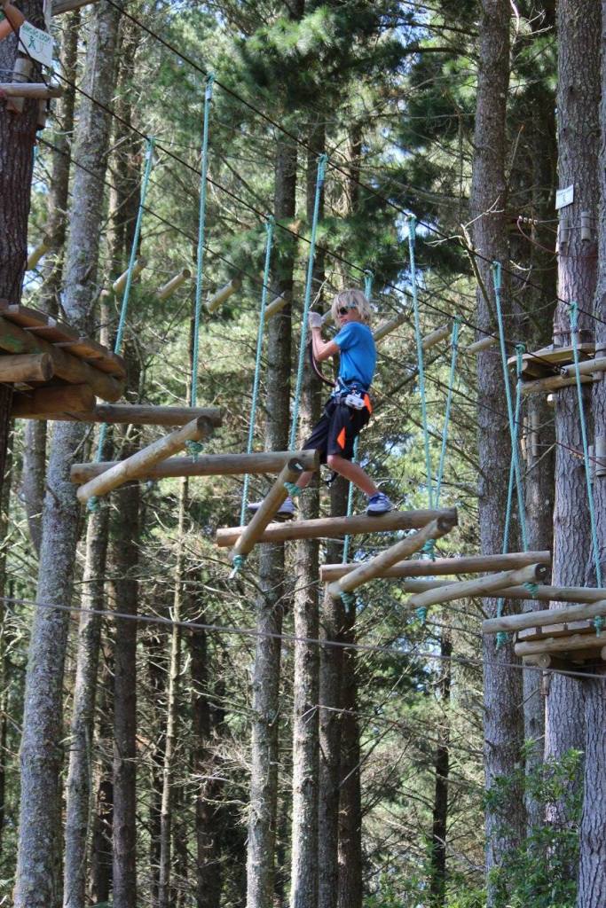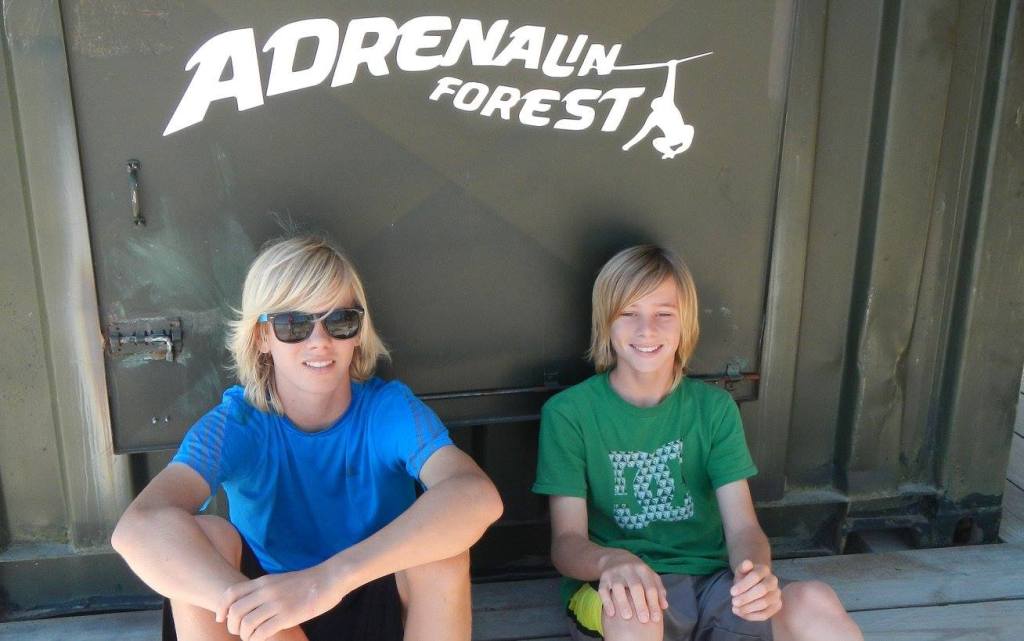 Adrenalin Forrest on the way. Adults $42. Kids > 1.45m (Brenden made it) $27. Kids > 1.3 m and < 1.45 m $17 (can only do pathways 1, 2). Tim & boys did all 6 pathways. D did 5. 1-3 were fun and easy. 4-5 were hard. 6 was hard and long.