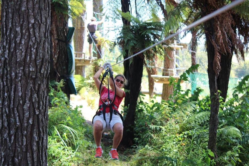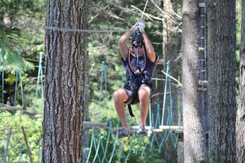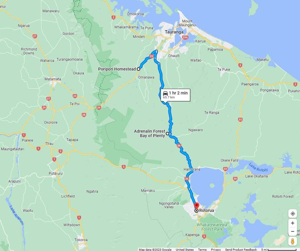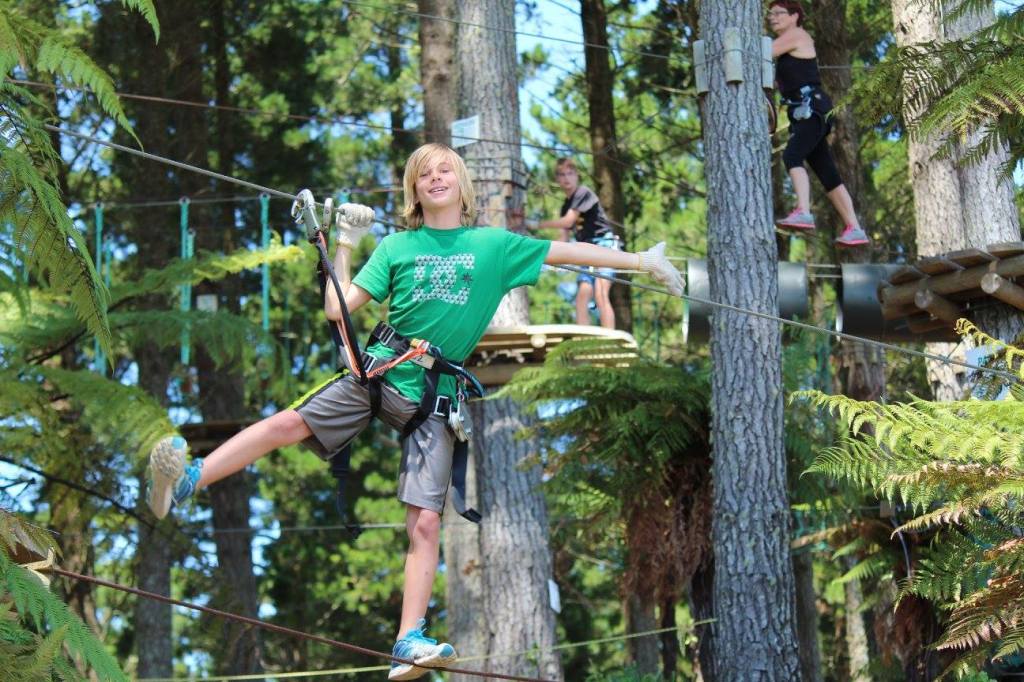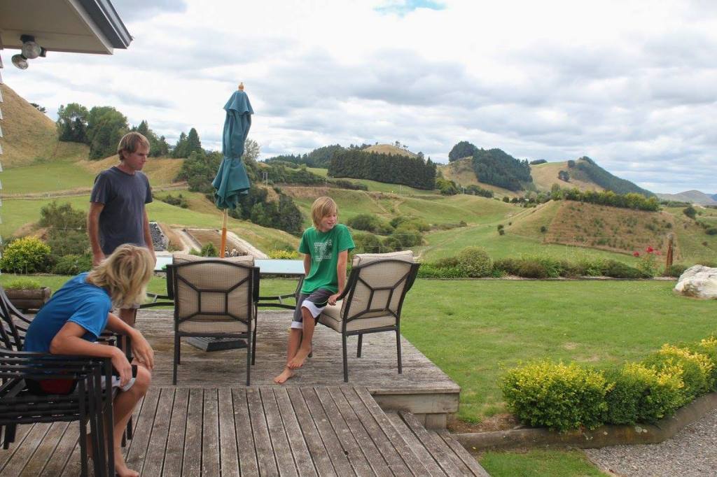 The Tuck Farm Inn was south of Rotorua, but I can’t find it on the map nowBetween Tauranga and Rotorua, we stopped at The Adrenalin Forest. Brenden barely made the height requirement, but that didn’t stop him from completing all six levels with Alex and Tim. I made it through five levels, and that was hard enough for me.Finished the safety briefingAll fun and games through the first 3 levels……although Tim was still the picture of concentrationThese barrels are suspendedGetting a bit higher…This challenge, called the Tarzan Swing, was in level 4 and it was the first one I remember being hard. Looks like Brenden’s enjoying it though……Me? Not so much.“I don’t want to do that one”The ladder up to the first platform on level 5This and the next 2 photos are three of the hardest challenges in Level 6We made it!!!This was our house on the hill at Tuck FarmA view from our houseAnother view from our houseThey milk the cows twice a day, morning and afternoonThe house had a small closet room. Would have been perfect for Andrew! But Brenden claimed it.
