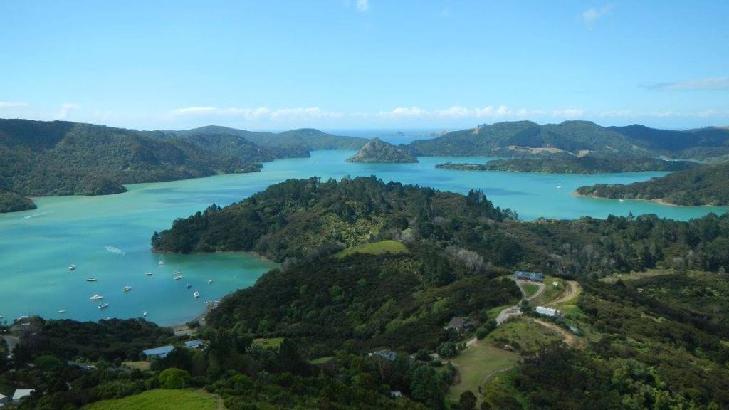 Whangaroa harbor is a huge bay with lots of nooks and crannies, and we are currently anchored by our lonesome in one of the offshoots called Waitapu Bay. It is about a mile dinghy ride to “town” which consists of a marina, a fishing club/restaurant, and a small general store. We’ve enjoyed a couple of day trips by car to hang out with a couple other kid boats, and the boys even got to stay over at a campground with them the other night. Yesterday afternoon we had a family hike up to the top of St. Paul’s Rock which was a relatively short, steep hike up to a spectacular 360 deg view of the entire harbor. Hopefully in the next few days we’ll get good weather to head back down to Opua and start prepping for our big road trip and Mom and John’s visit.