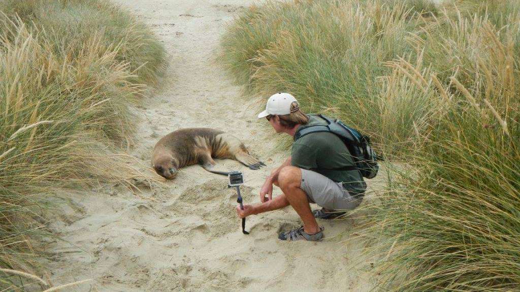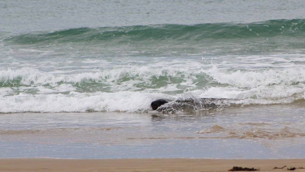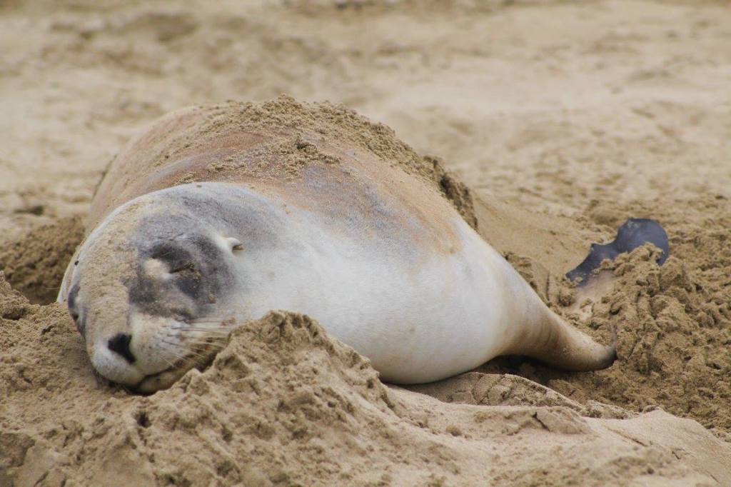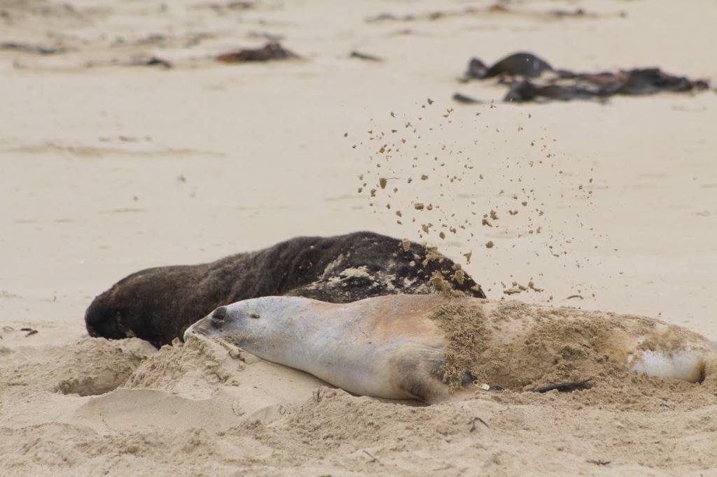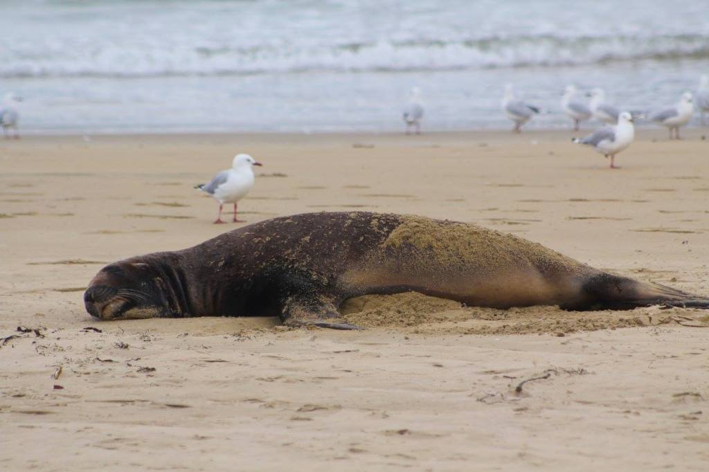 Easy beach access from the holiday parkPoor bird lost a footWe took a long walk along Surat Bay and then over the ridge at False Islet over to Cannibal Bay. The highlight was definitely……The sea lions!Tim provoked this oneThis guy is laying on his backTaking the trail between Surat Bay and Cannibal BayCannibal BaySurfin inPermission granted to return back to the holiday parkIt was kind of tricky passing this oneThe weather changed instantly on us. It went from warm, muggy, and not much wind to ice cold and about 25-30 kts. This photo tries to capture the wind chop on Surat Bay, but it doesn’t do it justice.Back at the holiday park
