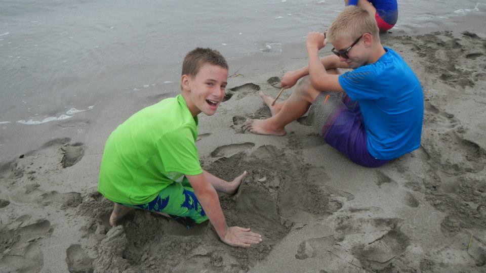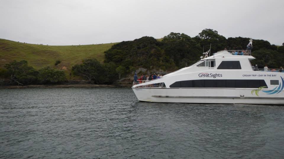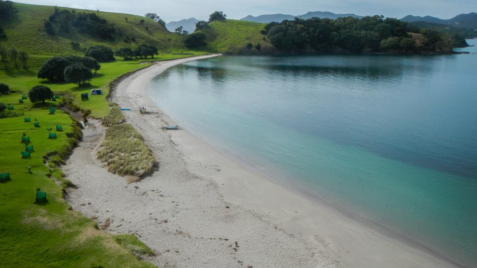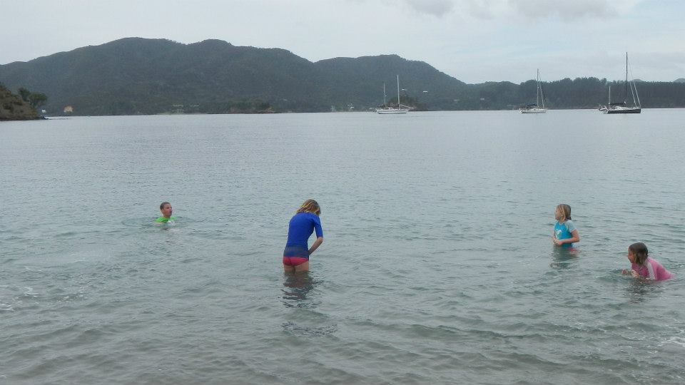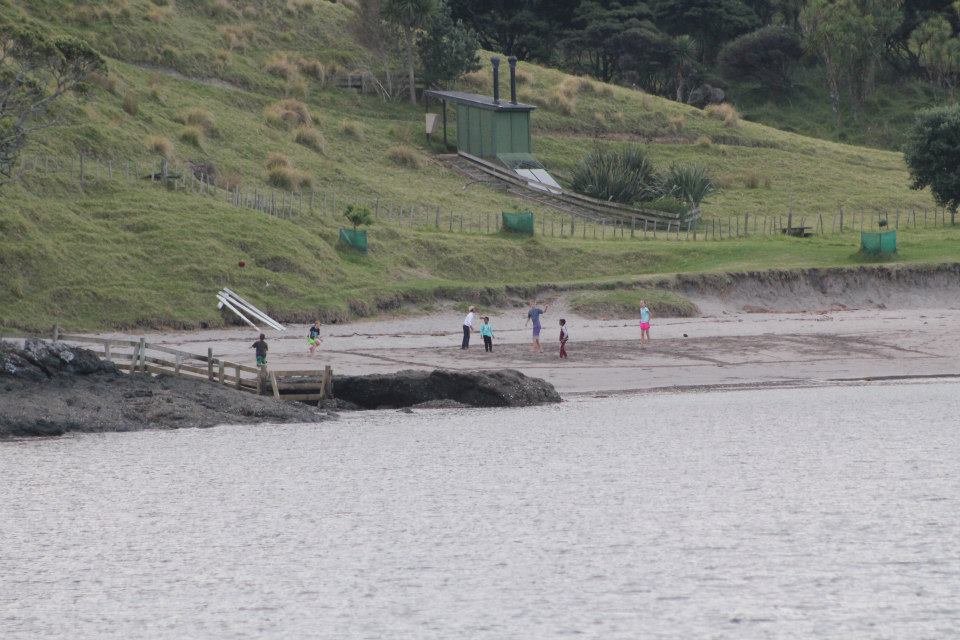 - To Urupukapuka, Nautilus too. Kids play on the beach.