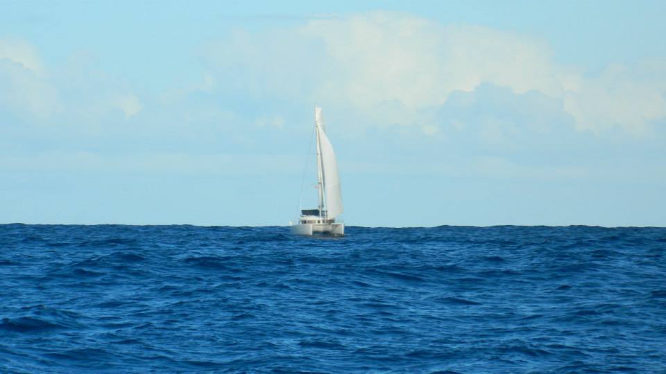 But that’s not the best part. Our friends on Caminante were only about 5 miles away when Tim told them we had fish and if they catch us they can have some. Just before sunset they arrive only a couple hundred meters away, and it was quite a sight, because Caminante is a huge (60+) metal sailboat and they had 3 sails still up, needless to say the photo op was priceless. Tim was able to pass them the fish by tieing a line to a float and trailing the float behind us. Then Caminante picked up the float with the boat hook, and with the bag of fish secured to the other end of the line, Tim tossed that in the water. It was so much fun to be that close out here in the middle of the Pacific!